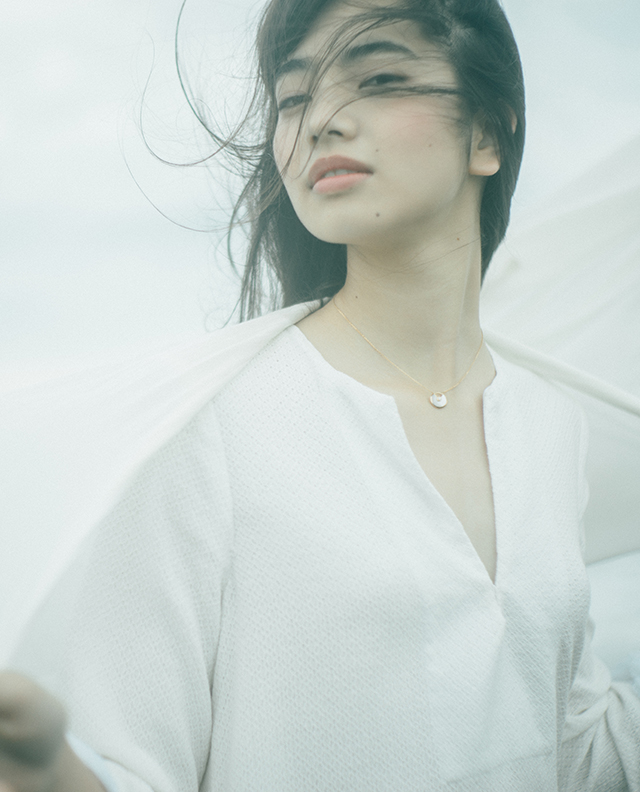 「海沿いでの撮影は、母と離島へ旅行に出かけた時のシチュエーションによく似ていました。普段、照れくさくて素直に母と話しをする機会がなかったのですが、その時は心が開放されて、今までずっと言えなかった感謝の気持ちを伝えることができました」。モデルとしての活躍はもちろんのこと、昨年は映画出演も果たし、弱冠19歳にして日本の映画界を背負う期待の女優として注目を浴びる彼女。いまにも折れそうなくらいに華奢な身体とはうらはらに、スクリーンから溢れ出す妖しい輝きは見るものを圧倒させる。