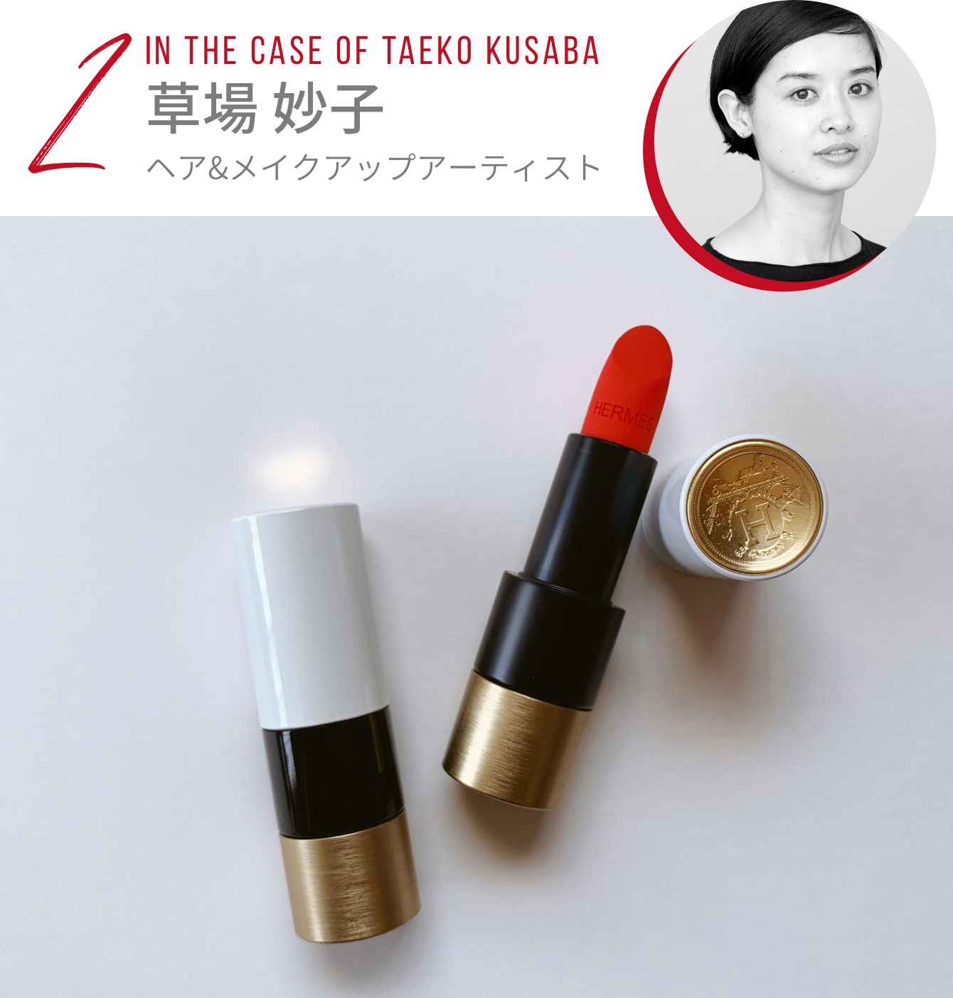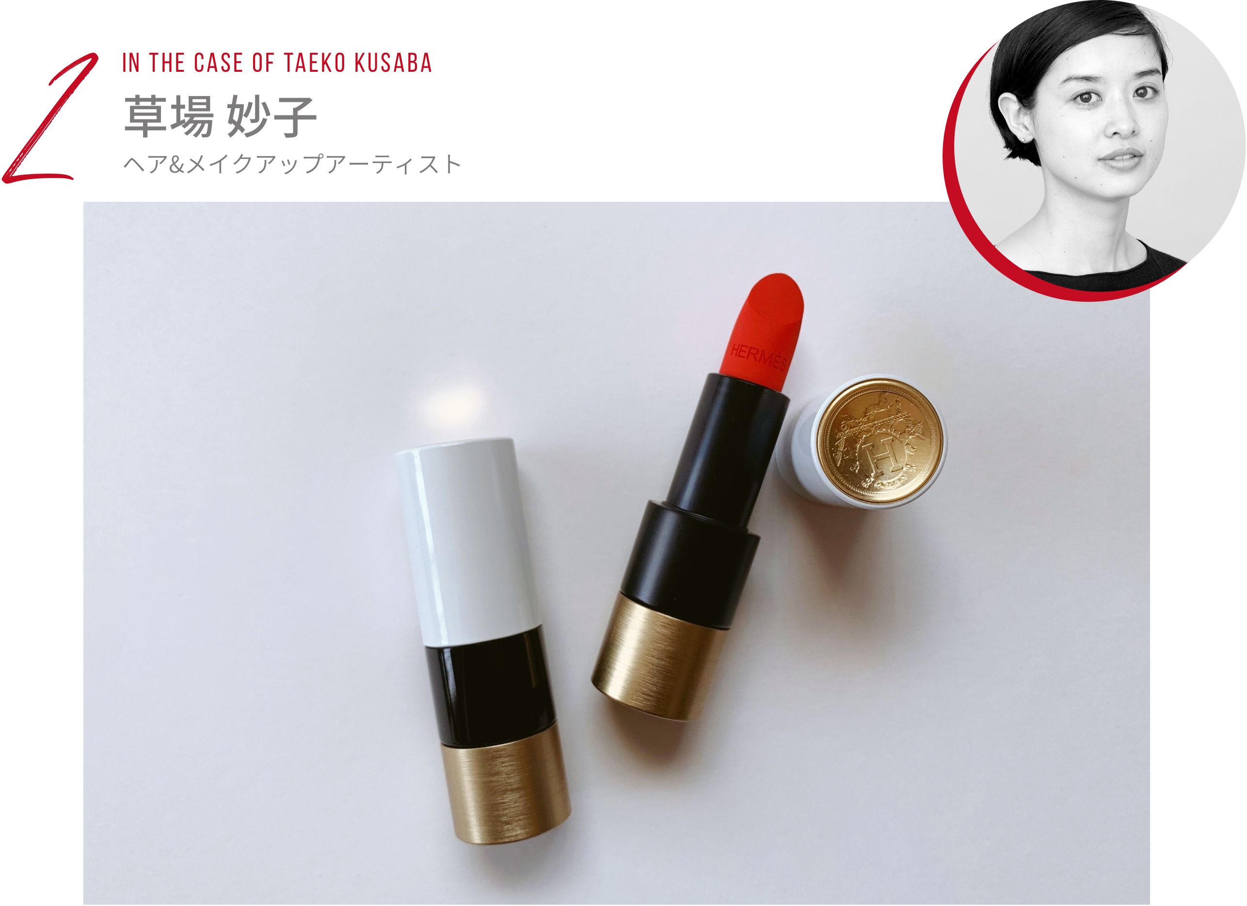 「時間をうまく使えない——。自宅で過ごす数日間は反省ばかりでした。どうしても休みモードでダラけてしまう。『形からオンモードにしてみては?』と思い手に取ったのはなじみカラーではなく、鮮やかでしっかりと色づく『ルージュ・エルメス(ROUGE HERMES)』のルージュ・オランジュ。赤みのあるオレンジは肌を明るく、表情までもキリッとさせる。ケースデザインの美しさも家の中でも気分を上げる演出の一つ。気持ちが切り替わり、充実した一日に」