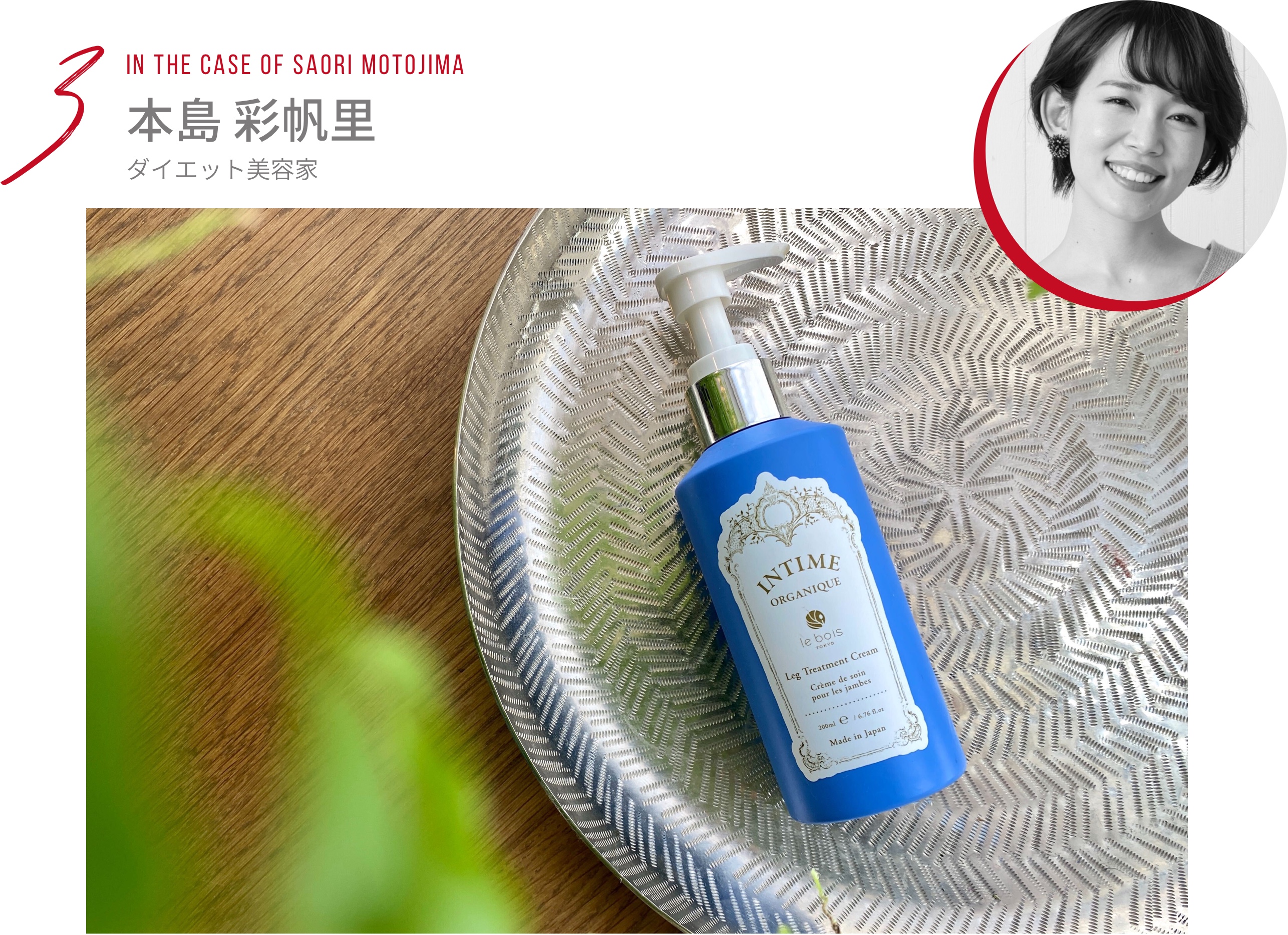 「自分と“対話する”時間が増えたからか、最近は自分がより心地よく感じるモノしか使えなくなってきました。そんな中、体と心をリフレッシュしたいときに選ぶボディークリームは『アンティーム オーガニック(INTIME ORGANIQUE)』の『レッグ トリートメント クリーム』一択。トレーニング後や凝り固まった肩周り、マッサージできないときの“塗るだけケア”にもオススメ。清涼感のある香りと使い心地が、優しくクールダウンしてくれます」