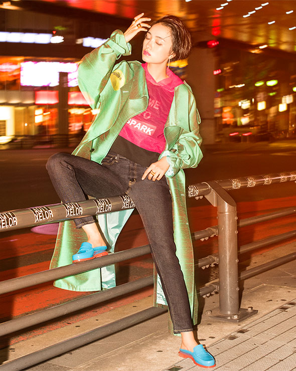 「ファッションが昔から好きで、モデルになる前はショップ店員をしていました。とにかく私は好きなことにはとことん一途で、突き詰めるタイプ。これから先も、ファッションというフィルターを通してさまざまな視野を広げていくつもりです。実は来年、ロンドンでもモデル業にチャレンジします。どうせ上を目指すなら、海外での活躍は必須だと思うから。ロンドンを選んだ理由は、完全にフィーリング。あと、音楽にしてもアートにしても、若手を育てるのに長けている国だからです。好きなモデルはケイト・モスとアギネス・ディーン。2人ともロンドン出身だし、彼女たちの確固たる生き方にも引かれます。ロンドンでの活動は、自分にとってこれまでにない大きな挑戦になるはず。その経験を生かして、日本はもちろん、台湾や中国などアジア各国でも活動の場を増やしていきたいですね」。