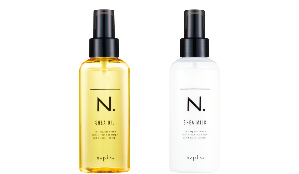 (左)軽いテクスチャーと潤いの浸透力を両立した「エヌドット シアオイル」(150mL)2600円、(右)さらさらとしたテクスチャーでしっとり仕上がる「同 シアミルク」(150g)2600円