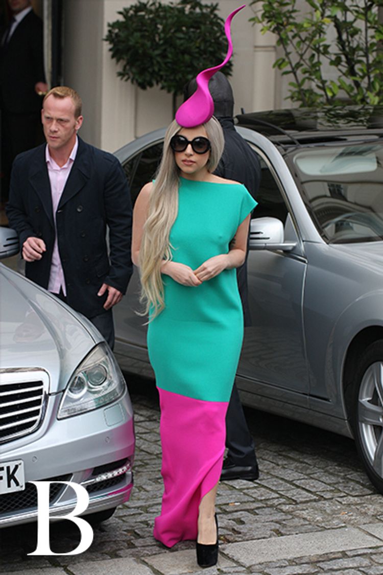 ガガの生きている世界では、普通の日でもハイファッションに身を包むらしい。「ロクサンダ(ROKSANDA)」の明るいバイカラーのドレスに「フィリップ トレーシー」のファシネーターを合わせたスタイルは、ガガにとってファッションを気にしない瞬間などないことを物語っている。とことんやるのがカギだ。