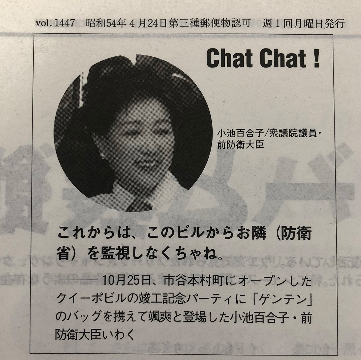 「愛」ゆえに「変わらない・変われない」とは、一体どういうことなのか?具体例を社内外から説明してみよう。まず社内では、このページ。「WWDジャパン」は私の入社前からずっと、左にある「Chat Chat!」というコーナーを掲載してきた。このコーナー、かつては痛快だった。個人的に一番笑ったのは、バッグメーカーのクイーポが市ヶ谷に自社ビルを構えた2007年の記事。自衛隊の市ヶ谷駐屯地が見下ろせる社屋の竣工パーティーに招かれた小池百合子・衆議院議員(当時)が会場をどよめかせた、「これからは、このビルからお隣(防衛省)を監視しなくちゃね」という一言だ。彼女が在任55日の防衛大臣を解任されて間もないころだった。「Chat Chat!」は意味深な一言を取り上げてきたコーナーだが、恥ずかしながら最近は業務が作業化していたし、痛快な一言なんて簡単には出てこない。ことコロナ禍で対面取材の機会が少なくなると、雑談そのものが大きく減少。生みの苦しみが続いていた。ギリギリまでエントリーを募っても集まらず、時には妥協して埋める作業を繰り返したウイークリーのメンバーを隣で見続け、実は何度も「やめればいいのに」と思ったし、口にしたこともある。「今っぽくツイッターでバズった投稿を取り上げるくらいはアリなのでは?」ともデジタル側の私は考えた。でもウイークリーのチームが続けてきたのは、媒体への「愛」ゆえ。「名物」クラスのコンテンツなら、「愛」の深さは相当だ。私がその立場でも、多分現状は変わらなかっただろう。