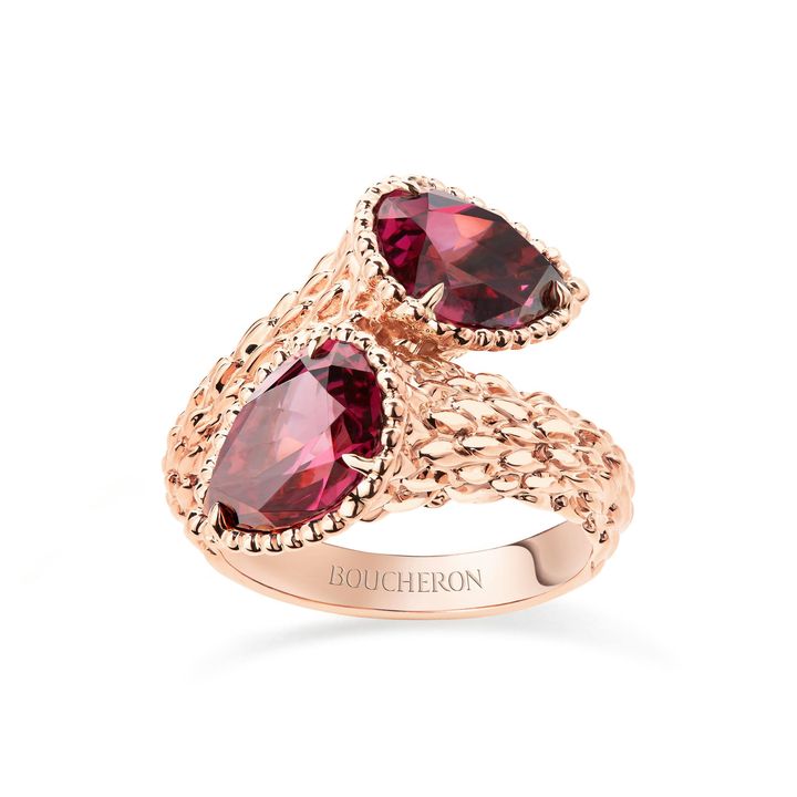 “セルパン ボエム”リング。ロードライトガーネット、PG。56万3636円©️BOUCHERON