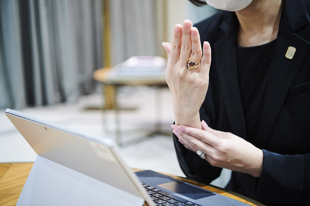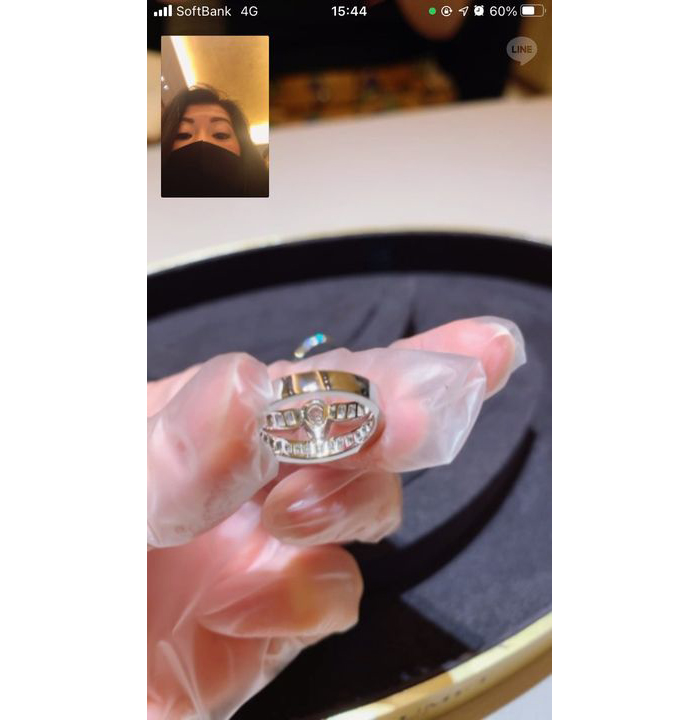 使用するのはスマートフォンかPCで「ショーメ」ではLINE、「ブシュロン」ではフェイスタイムの割合が高いという。商品にカメラのピントを合わせるにはスマートフォンの方が便利だが、PCによる接客を希望する消費者もいる。ジュエリーはサイズが小さいので、相手にどれだけよく商品を見せられるかが一番のポイントだ。特にディテールや職人技を画面上で伝えるには、コツをつかむことが必要だ。