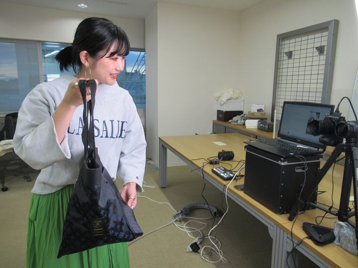 MCに抜擢された「ラシット」ウェブスタッフの石倉夏実さんは、SNSを含めたデジタルマーケティングの担当者。「文字情報だけでは分からないバッグの魅力をスタッフの個性を通して直接お客さまに伝えたい。ライブコマースは『ラシット』の顧客の方がたくさん見るので、まずはコンテンツとしての完成度を高めようと思った」。特に力を入れたのがディテールの説明だ。視聴者からのコメントでもサイズや重さについての問い合わせが多い。