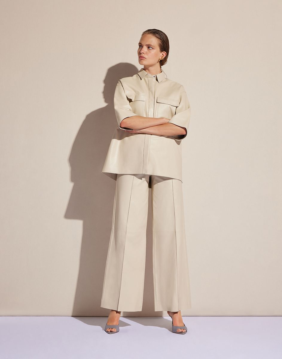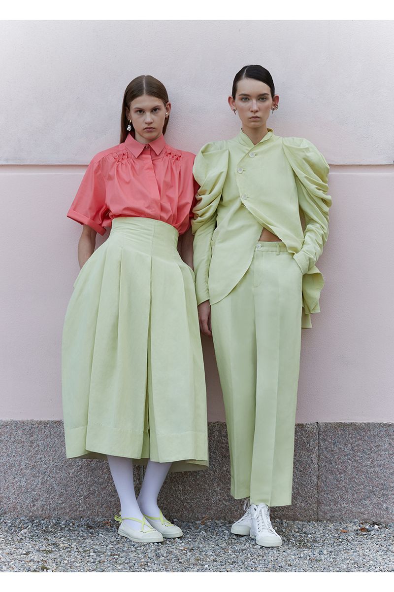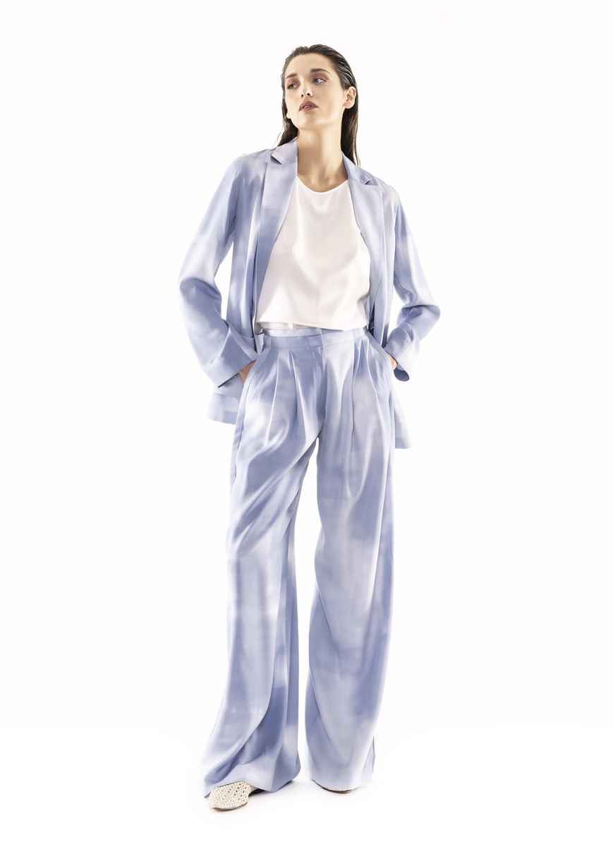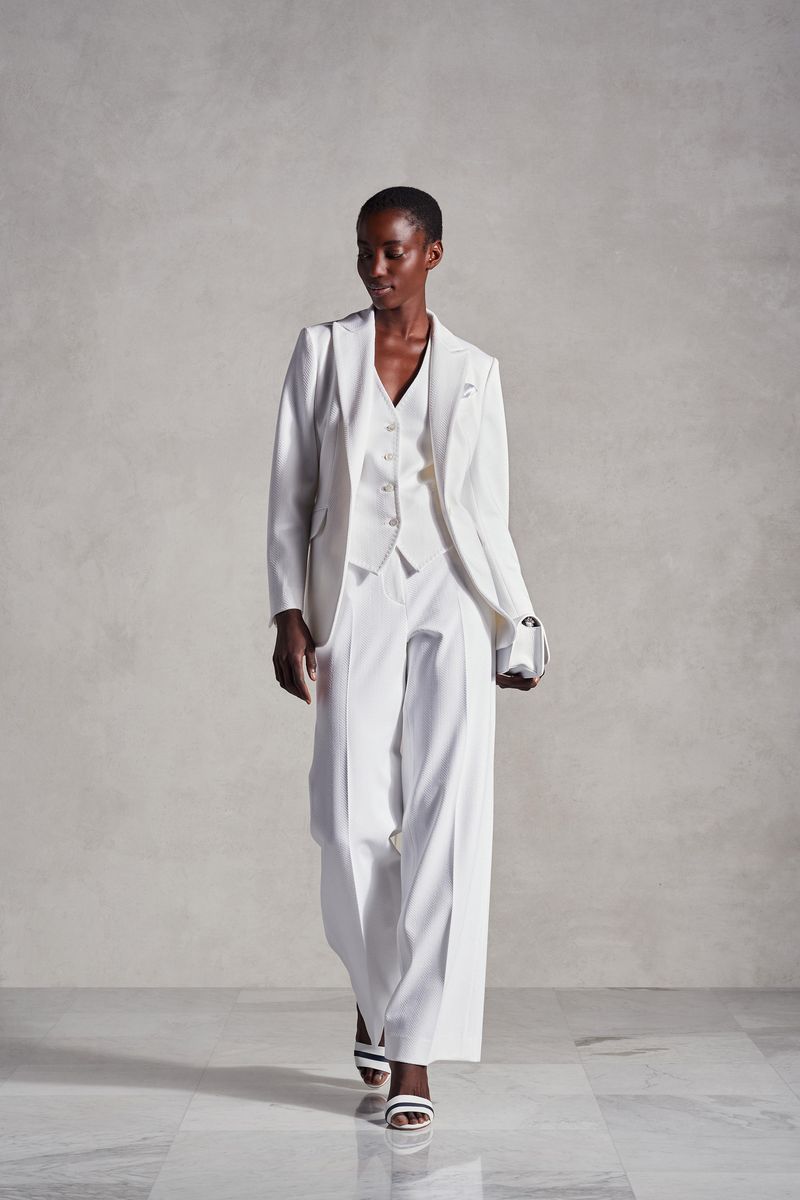 「ブレーズ(BLAZE)」は、長年にわたり洗練を重ねたテーラードスタイルを極めながら、今シーズンでは新たに形や素材で遊びを加えた。フローラル柄をあしらった襟のないボレロ型ブレザーやサファリジャケットなどを取り入れた。ほかにもウエディングシーンにぴったりなスーツも登場。セージグリーンやパステルピンクのベルベットを使ったブークレブレザーは、公式の場にも華を添える1着。コレクション発表はアートギャラリーで行い、アクティビスト兼俳優のビアンカ・ジャガー(Bianca Jagger)の肖像画などを飾った。合わせて、女性がテーラードアイテムを着こなす白黒のポラロイド写真を提示し、関わりを持つ女性たちのコミュニティーに光を当てた。