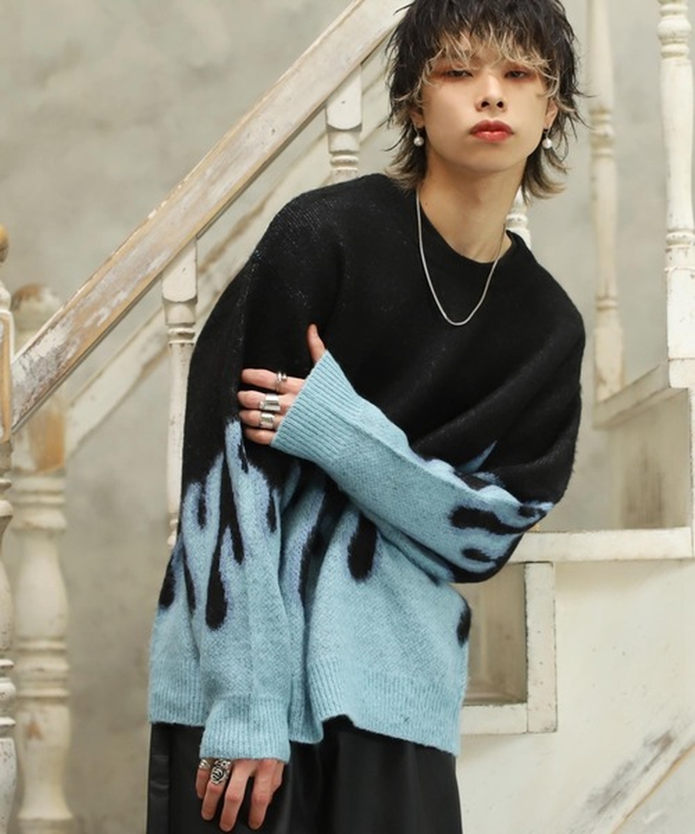 トップスは、スエットやニット等、ハーフジップにすることでよりトレンド感のあるデザインになり、人気。身幅や丈感で差別化を図っているアイテムが多数出ている。ニットはスタイリングになじませやすいカラーリングや柄が人気のノルディック柄が好調。定番のナチュラルベースなものもあれば、ブラックなどシックな展開のショップもあり。モヘアは、温かみがあり、グランジなスタイリングができることや、人気の古着スタイルとも相性がいい。ファイアーパターンやアニマル柄等、幅広いラインアップや毛足の長いアイテムが好調だ。バンドカラーシャツは、シンプルで着回しが利き、1枚でそれっぽく見えることが人気要因。オンとオフ両方で着用可能。