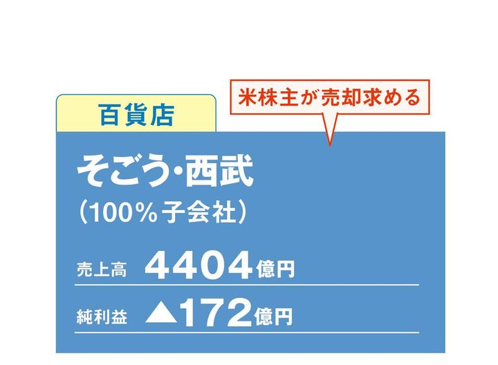 売却話はセブン&アイの大株主でアクティビスト(物言う株主)の米バリューアクト・キャピタルが、不振が続く百貨店事業の切り離しを強く求めたことが発端だ。セブン&アイはコンビニ、スーパー、百貨店、専門店など幅広い事業を擁する総合小売りグループを標榜してきた。売上高に相当する営業収益は5兆7667億円(2021年2月期)の巨大企業だが、利益のほとんどは国内外のコンビニ事業で稼ぐ。一方、百貨店事業は低収益、赤字体質で足を引っ張っている。そごう・西武買収を主導した鈴木敏文会長兼CEOが16年に失脚すると、百貨店事業の売却話がたびたび持ち上がるようになる。コロナで屋台骨のコンビニ事業の収益まで打撃を受ける中、大株主の意向は無視できなくなった。