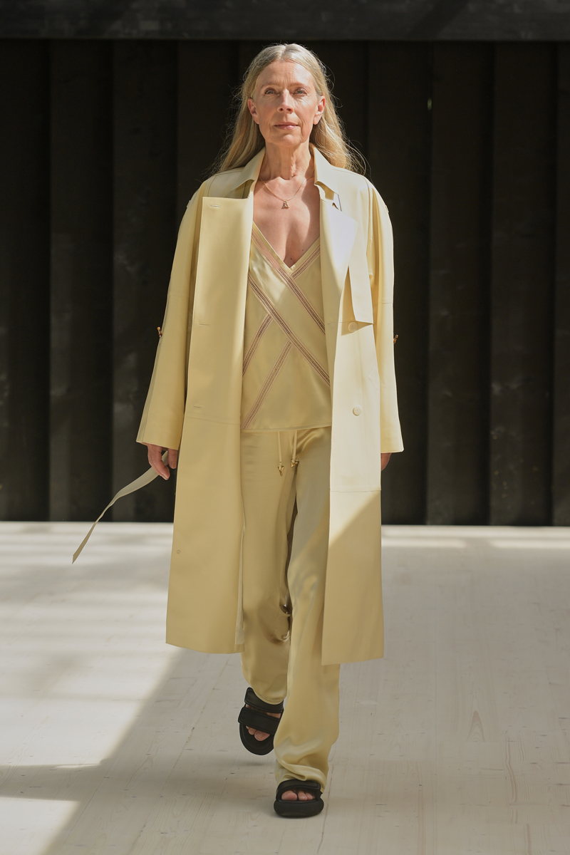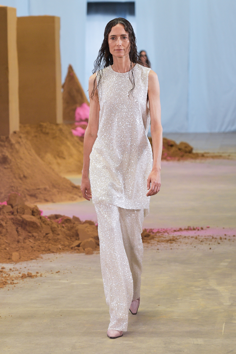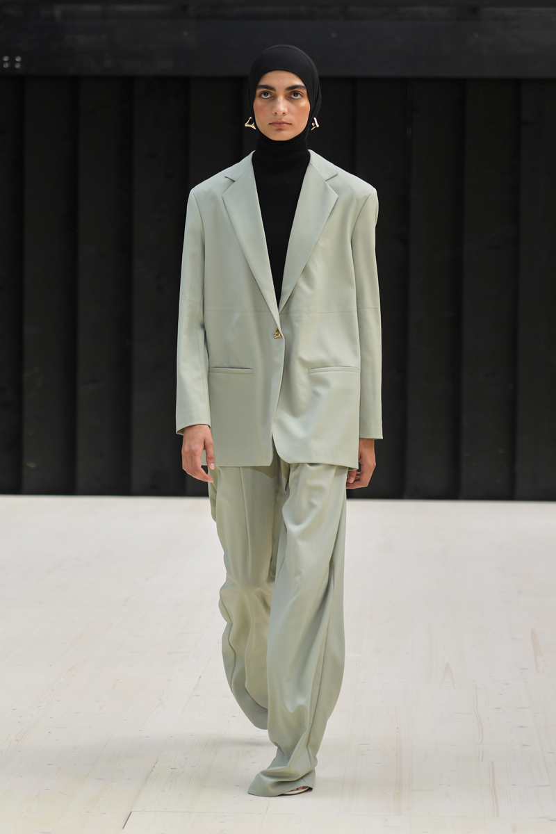 具体的な基準は、「デンマークファッション倫理憲章に署名し、モデルのキャスティング時には多様性と包括性に配慮すること」「コレクションの最低50%に認証された素材や再生素材、デッドストックなどを使用すること」「国際的なガイドラインや基準に従ってサプライチェーンにおけるデューデリジェンスを実施し、サプライヤーと協力して不当な雇用がないことを保証すること」「ハラスメントや差別のない労働環境を全ての従業員に提供し、誰もが平等な機会を享受できるように努めること」「ショーのセットやプロダクションが廃棄ゼロであること」「過去のコレクションの在庫を廃棄しないこと」「毛皮を使用しないこと」など。もちろん、紙の招待状は一切なし。水はペットボトルではなく紙パックで提供され、ゲストの送迎には電気自動車が使用された。