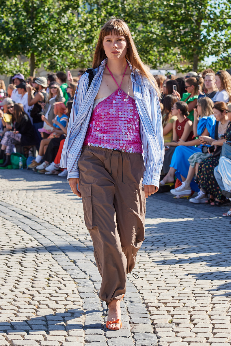 「ガニー」「ホルツワイラー」「スティーヌ ゴヤ(STINE GOYA)」「サックス ポッツ(SAKS POTZ)」など、CPHFW参加ブランドの多くは兄弟や夫婦、旧知の親友同士で手掛けることで力強く協力的なチームを築き、着実な成長を見せている。例えば、カラフルな花モチーフと輝きが印象的なコレクションを見せた「スティーヌ ゴヤ」は、9月に同ブランドにとって最大の市場である英国初の店舗をロンドンのソーホー地区にオープン予定。にじんだフラワープリントやクラフト感のあるディテール、パラシュート生地のアップサイクルが目を引いたノルウェー・オスロ発の「ホルツワイラー」は、セコイア・キャピタル・チャイナ(SEQUOIA CAPITAL CHINA)から投資を受けたばかりだ。さらに、多彩なコラボレーションを織り交ぜ、高揚感あふれるコペンハーゲンの夏を表現したクリエイションもさることながら、ブランドビジネスとしても他の一歩先を行く「ガニー」に関しては、17年に過半数株式を取得した投資会社Lキャタルトン(L CATTERTON)が5億〜7億ドル(約700億〜980億円)規模でブランドを売却する可能性が報じられている。