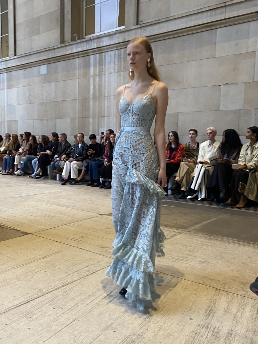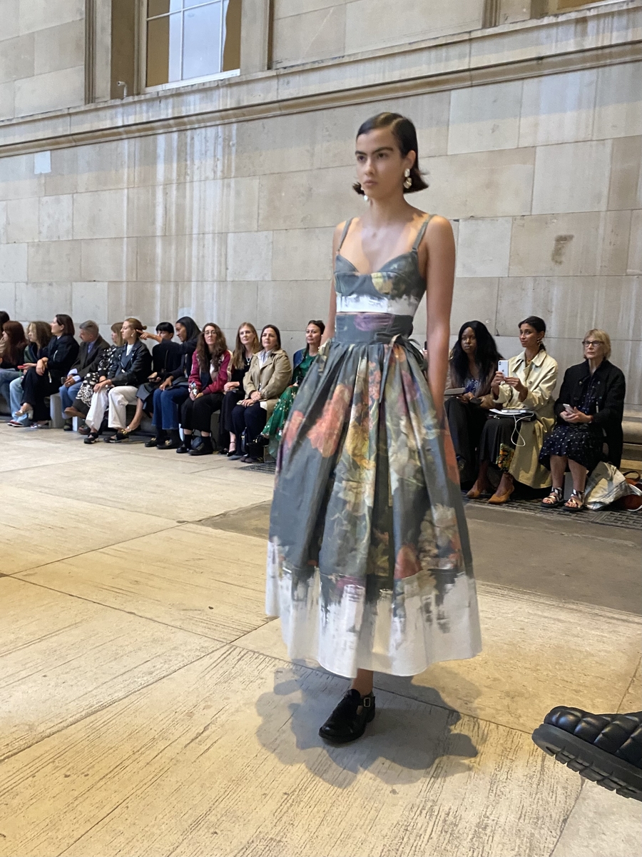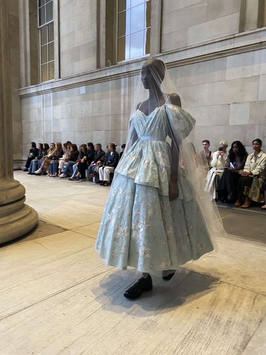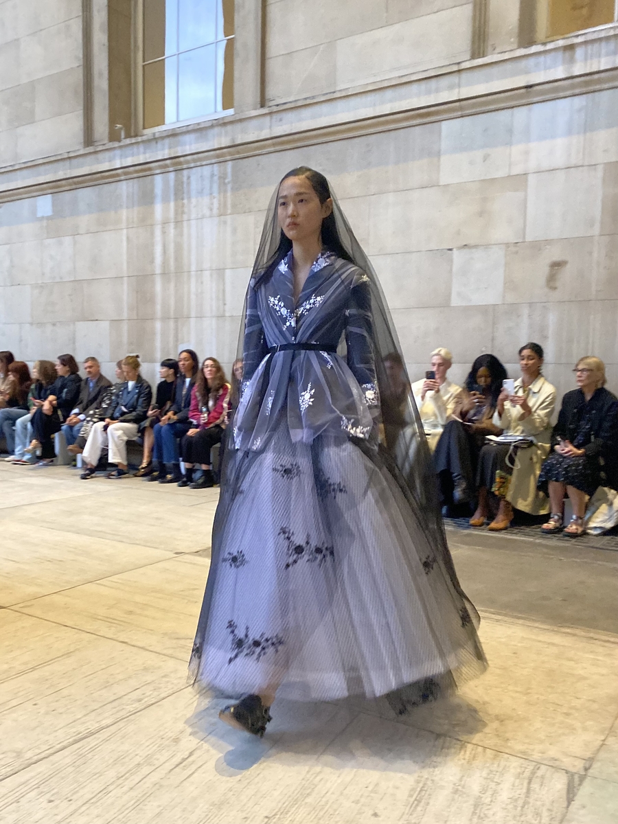 歴史を探求した「アーデム(ERDEM)」は、過去への賛美と芸術への情熱に溢れた夢のようなショーを大英博物館の回廊で行った。デザイナー、アーデム・モラリオグル(Erdem Moralioglu)はロンドンの主要な美術館である大英博物館(British Museum)、テート美術館(Tate)、ヴィクトリア&アルバート博物館(Victoria and Albert Museum)、ナショナル・ギャラリー(National Gallery)の美術修復家の作業に感銘を受けたという。「18世紀の刺しゅうドレスを修復させるための複雑なチュールの内部構造と、15世紀に描かれた油絵が蘇る最先端技術を目の当たりにした」とモラリオグルは回想した。ニュールックに言及したAラインのドレスをチュールでロマンチックに昇華させ、絵画はモノクロでコットンドレスに描いた。美術作品を保護するためのダストカバーから得たアイデアによるチュールのベールが幻想的で、贅沢な生地を使ったドレスを気高い作品へと引き立てた。