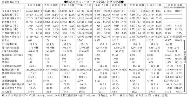 直販と消化卸で先行するゴールドウインがぶつかった3度目のつまずきとも被るところがあるが、22年3月期売り上げで直販(直営店164店とEC)が30%、消化卸が28%、一般卸が39%と推計されるゴールドウインと比べると、21年12月期末で直営店は33店と限られてもインストア71店とショップインショップ206店の消化卸の比重が高く、小規模コーナーのエントリーショップ256店の一般卸というスノーピークは、やはりゴールドウインの2度目の蹉跌に近いのではなかろうか。