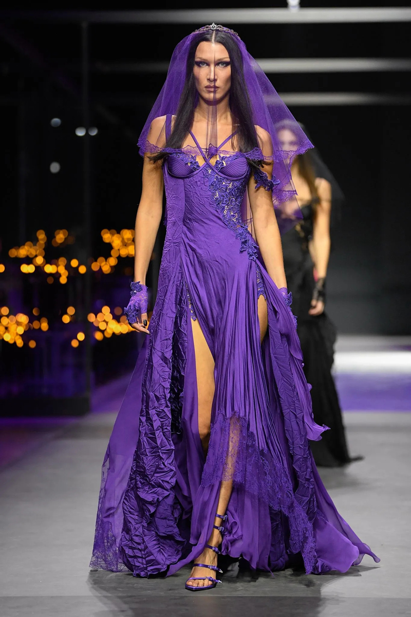 「ヴェルサーチェ」はブラックに鮮やかなフューシャピンクやパープルを合わせたルックが、このブランドらしい、強くて自信に満ちあふれた女性を表現していた。フリンジ、スタッズ、レース、コルセット、ランジェリーを思わせるディテールがゴージャスで華やか。ロゴアイテムも多く、顧客の反応もいいと思う。セクシーなドレス、ミニスカート、レザージャケット、サテンのカーゴパンツなどが印象的だった。登場したモデルはほぼ全員、驚くような高さのプラットフォームシューズを履いていたので、このトレンドはしばらく続くのではないかと思う。ショーの最後にはパリス・ヒルトン(Paris Hilton)が登場し、会場を大いに湧かせてくれた。
