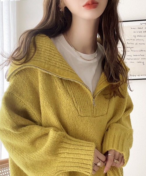 1枚でサマになる主役級ニットが人気。グラデーションニットは今季のトレンドでシンプルな色使いになりがちな秋冬服にアクセントを加える。シャギーニットもボリュームのある起毛感で温かみがあり好調。ハーフジップニットはファスナーの上げ下げで雰囲気が変わるのでスタイリングが楽しめることが好調要因。