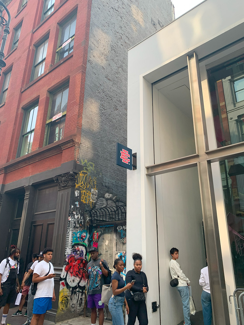 日本では「ニューエラ(NEW ERA)」とのコラボキャップの方が有名だが、本場ではスポーツジャージーのイメージが強い。数年前に「RHC ロンハーマン(RHC RON HERMAN)」が目利きの早さでバスケショーツを別注していたが、現在も日本には未上陸(並行輸入はあるかも)。ソーホーの店はかつて「ア ベイシング エイプ®(A BATHING APE®)」が入居しており(現在は移転)、デビュー前のキッド・カディも働いていた伝説の場所。実は行列がすごくて、時間がなかったため入店できず……。店内の様子はインスタグラムからどうぞ。