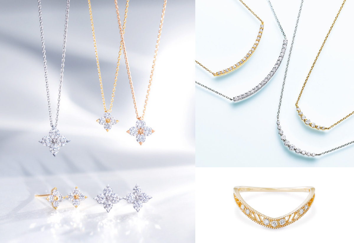 コロナを経て、消費者のおしゃれを楽しみたい、自分らしさを出したいという欲求から、ファッションジュエリーの需要が高まっている。コロナ禍、百貨店に若年層が来店するようになったのも好調の一因。手に取りやすい価格帯でファッションを楽しむ、または、コロナにより“より長く使えるものを”という消費心理の変化から、売れ筋価格の二極化が見られる。デザインはベーシックが主流。重ね付けもトレンドで、それが複数購入につながり、客単価がアップしている。選ぶ楽しみのある色石や大ぶりのジュエリーで個性をアピールする動きも広がっている。