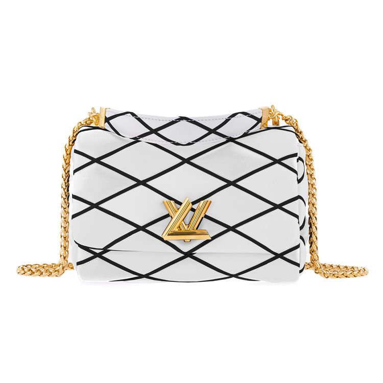 新作の“GO-14”はパッド入りのラムレザー仕立てで、“マルタージュ”(ひし形の格子柄)が特徴だ。ネックレスのようなチェーンはゴールドカラーで、肩掛けやクロスボディー使いが可能。さらにチェーンを二重にして、腕に掛けたり手持ちしたりできる。