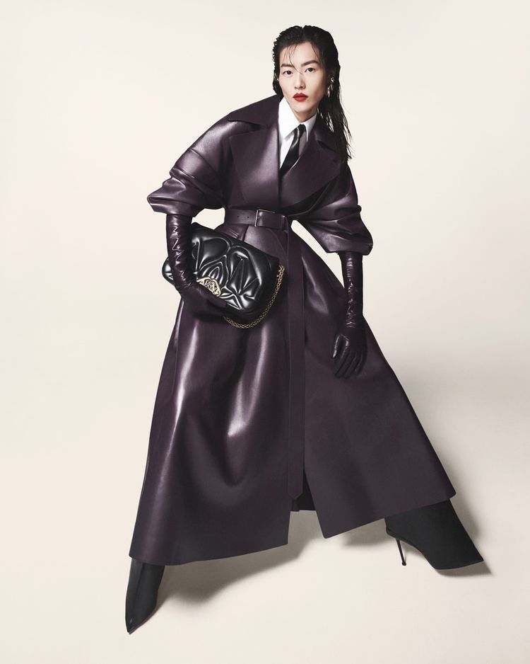 素材は羊革で、丸みを帯びたシルエットと“チューダーローズ”(英国に伝わるバラの紋章)に着想したエンブレム型クロージャーが特徴だ。チェーンとレザー、どちらも取り外し可能なストラップが付属し、ショルダーバッグのほかクロスボディーバッグとしても使える。
