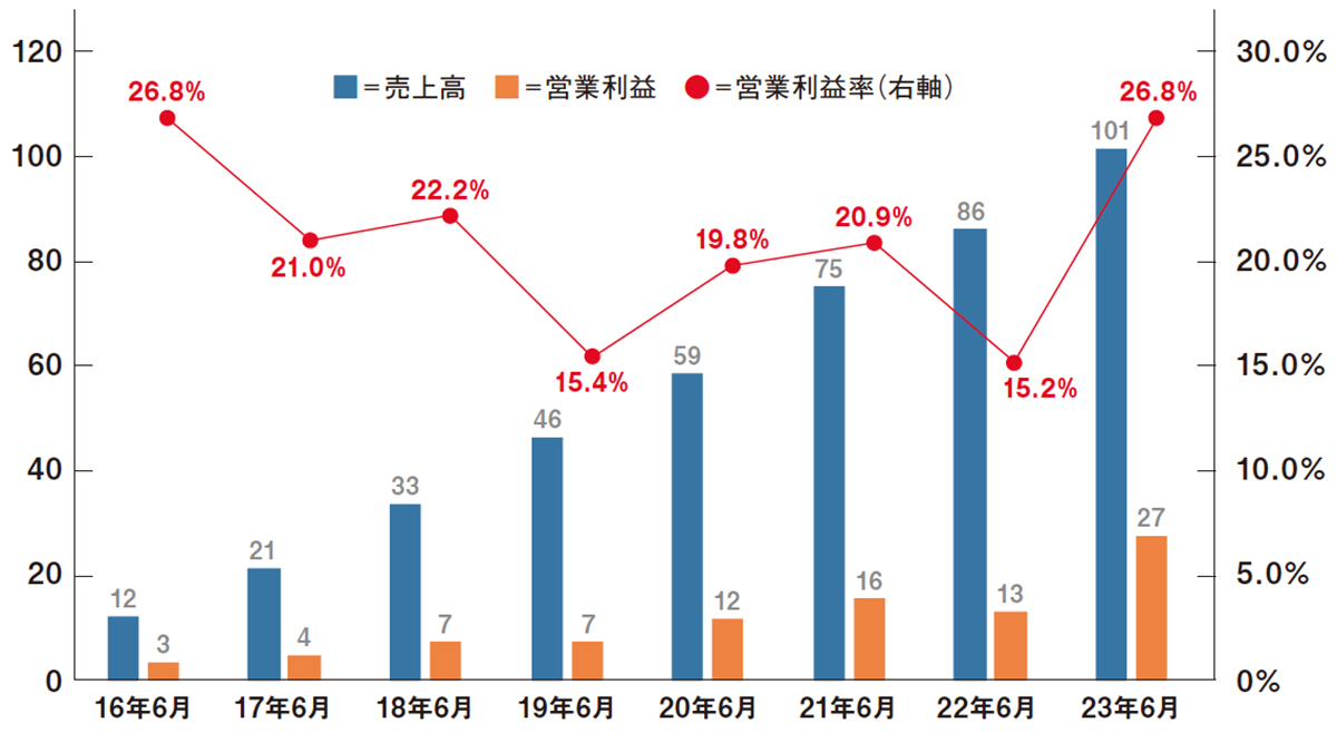 売上高の大本になるGMVもずっと伸びていて、23年6月期で国内は9846億円。米国事業を入れれば、すでに1兆円を超えていますが、24年6月期も10%成長を計画しているので、今期中に国内事業だけで1兆円を超えることが予想されます。13年創業で、10年で国内でGMVが1兆円規模になるというのは、すごいことですね。