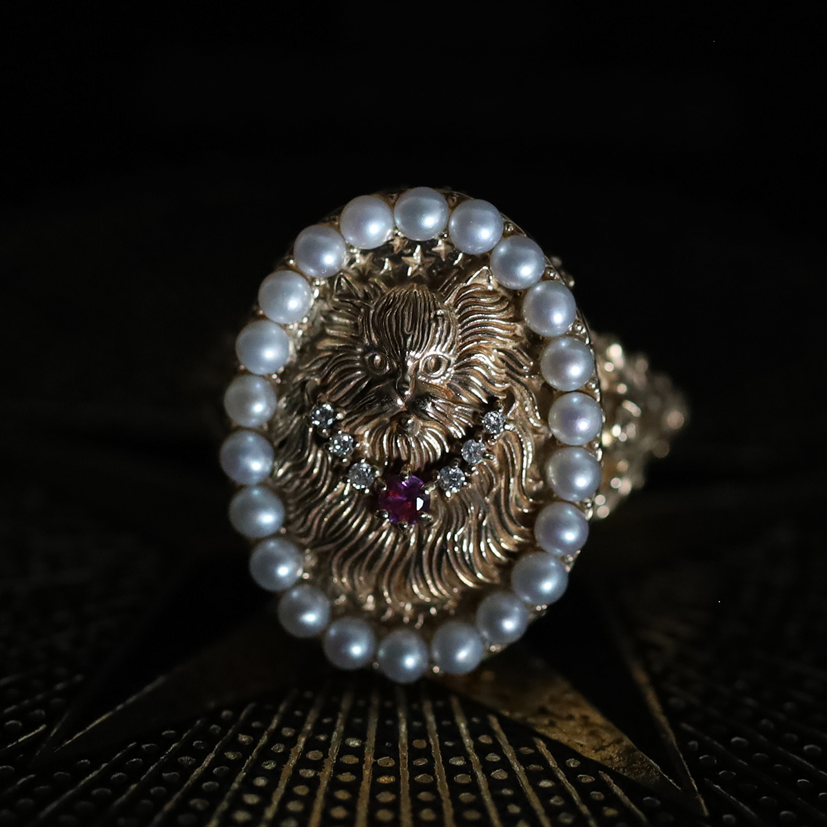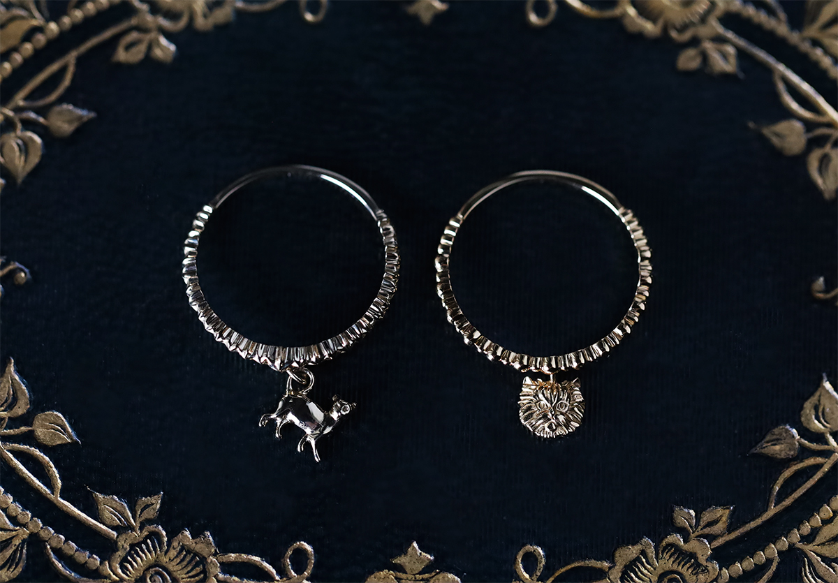 ジュエリーブランドの「マユラノアール」では、見守ってくれる相棒として猫のモチーフをチョイス。悪魔でありながら、男女問わず愛を取り持ってくれる存在といわれるホルンを吹く猫の姿をしたベレトを描いたリングや、動物や花などから好きなモチーフを選んで自分だけのお守りをつくれるジュエリーを提案している。猫を飼っている人、以前に飼っていた人、飼えないけど猫好きな人の癒やしになると好評だそうだ。