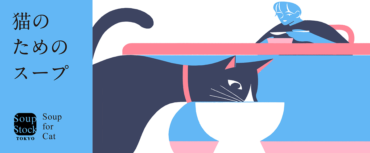 さまざまなスープを提供する「スープストックトーキョー」では、“猫のためのスープ”を販売している。猫と一緒に暮らすシェフが1年をかけて開発したスープには、猫への愛が溢れている。舌の肥えた猫も満足する真鯛とカボチャ、鶏肉とにんじん、まぐろとさつま芋のフレーバー3種類。余計なものは使わず自然な素材を使用し、だしをきかせているので、猫の食いつきが抜群だという。