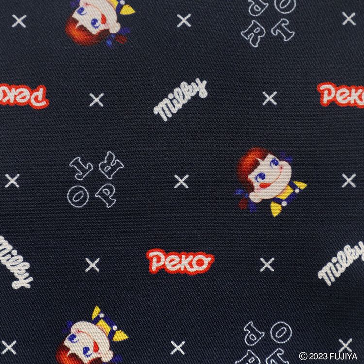 不二家のロングセラー商品であるミルクキャンディー“ミルキー”にフォーカスしたもので、同商品と「ピー・オー・ティー・アール」のロゴ、不二家のマスコットキャラクター“ペコちゃん”を総柄プリントした生地を用いる。