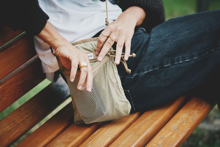 「ディーン&デルーカ」は、「重たい食料品を持ち歩く際にも手の負担を軽減できるようトートバッグのハンドルを太く、またサコッシュは最新のスマートフォンのサイズを考慮してメッシュポケットのサイズを2.5cm大きくした」と話す。素材は再生ナイロンの“ハイキュ ビロブロック リサイクルリップ”で抗ウイルス・抗菌加工が施され、ブラックに加えて秋らしい新色のベージュを用意した。