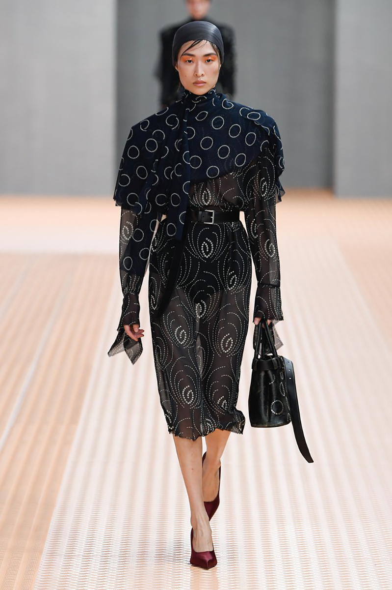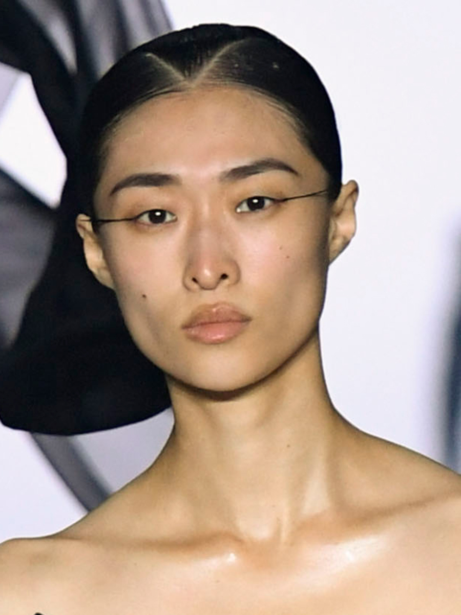 ミラノではナチュラルな装いを格上げするため、グロスで艶を与えたメイクが多く見られた。「グッチ ビューティ(GUCCI BEAUTY)」グローバル・カラー&メイクアップ・アーティストのトーマス・デ・クルイヴァー(Thomas de Kluyver)は「シンプルでエフォートレス、そして控えめなエレガンスを目指した」と話し、「グッチ・ロッソ・アンコーラ」という名の、サバトが選んだ赤い口紅を使用した。マルチグロスを上に重ねて艶を加え、パテントレザーの質感を再現。「プラダ(PRADA)」では、「プラダ ビューティ(PRADA BEAUTY)」のグローバル・クリエイティブ・メイクアップアーティスト、リンジー・アレクサンダー(Lynsey Alexander)が8月にローンチしたばかりの同ブランドのアイテムを披露。レンガ色やタンジェリンのアイシャドウにセラムを重ね、グロッシーな目元に仕上げた。