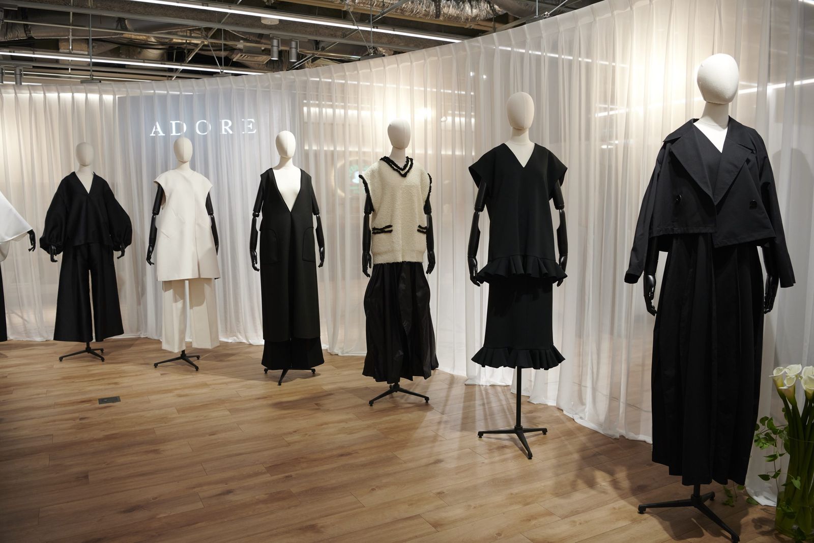 ブリュード・プロテイン繊維は、2019年にゴールドウインの「ザ・ノース・フェイス」が世界で初めて採用したアウトドアジャケット“ムーン・パーカ”を販売し、大きな話題を呼んだ。その印象から、記者の中でブリュード・プロテインは、テックウエアやアクティブウエア向きの機能糸の印象が強かった。イメージと対極にある、エレガントな婦人服の「アドーア」で採用されたことには驚いたものの、コートに袖を通すとその理由をしっかり感じることができた。