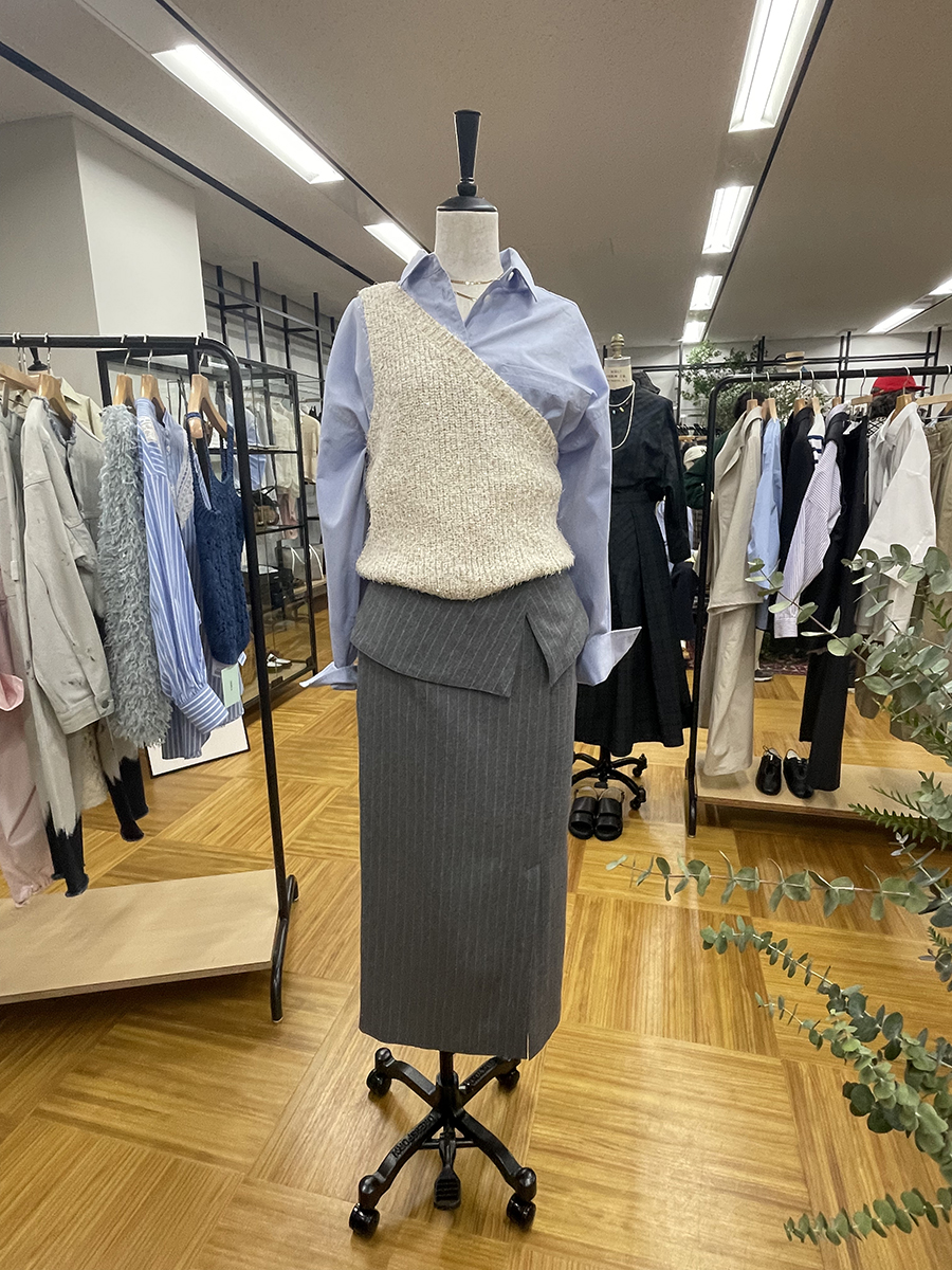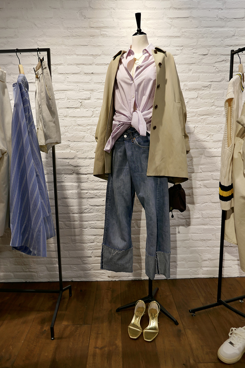 「長く着続けられるものを買いたい」という意識が年々強まる中、ボタンダウンシャツ、トレンチコート、アンサンブルニットなどのワードローブの定番に改めて光が当たっている。ただし、定番をそのまま提案してもなかなか客の心は躍らず、ベーシックSPAとも差別化できない。シルエットバランスや素材を変えるなどのひとひねりや、裾を結わえる、色合わせに変化を出すなどの“スタイリング力”が問われている。