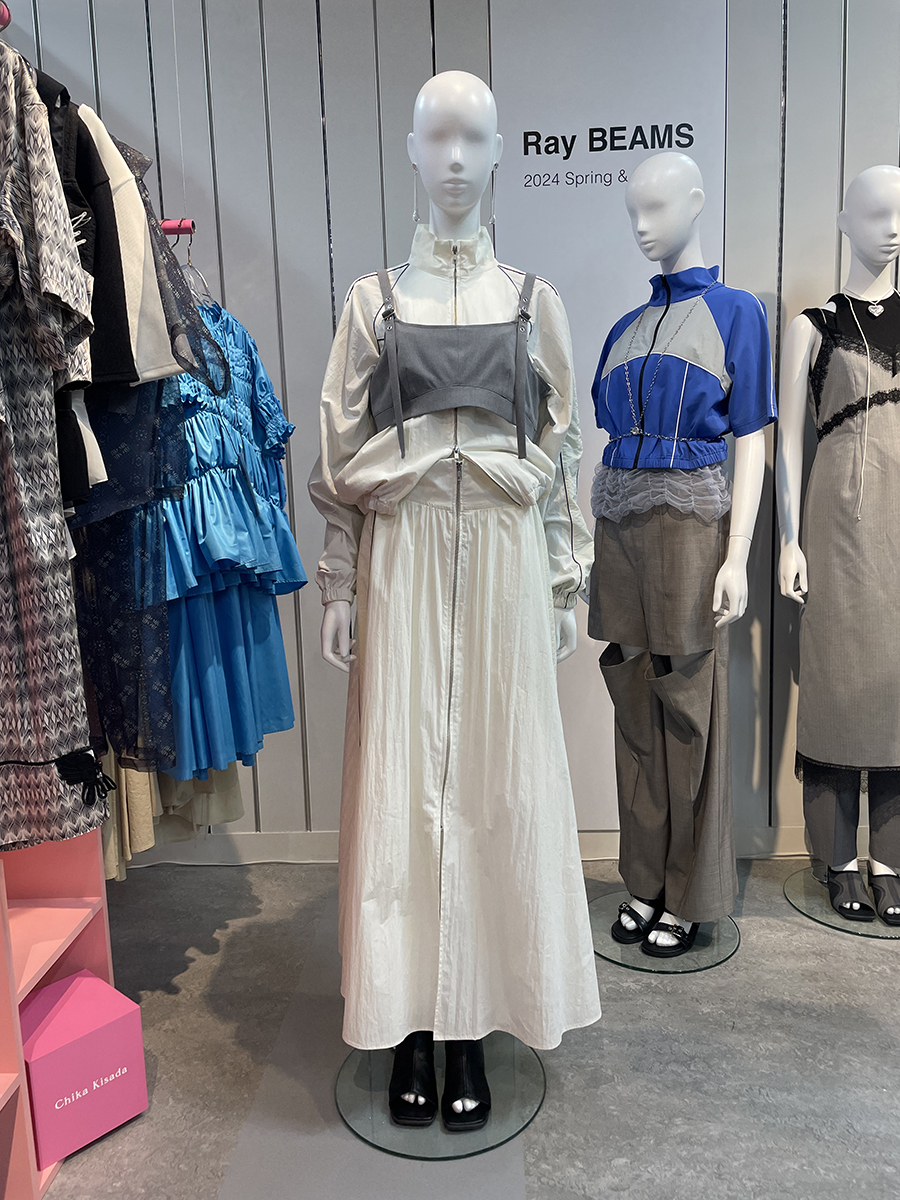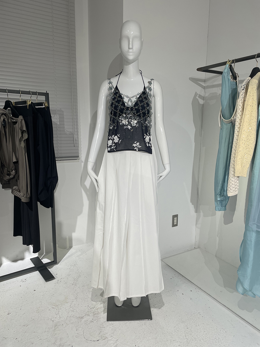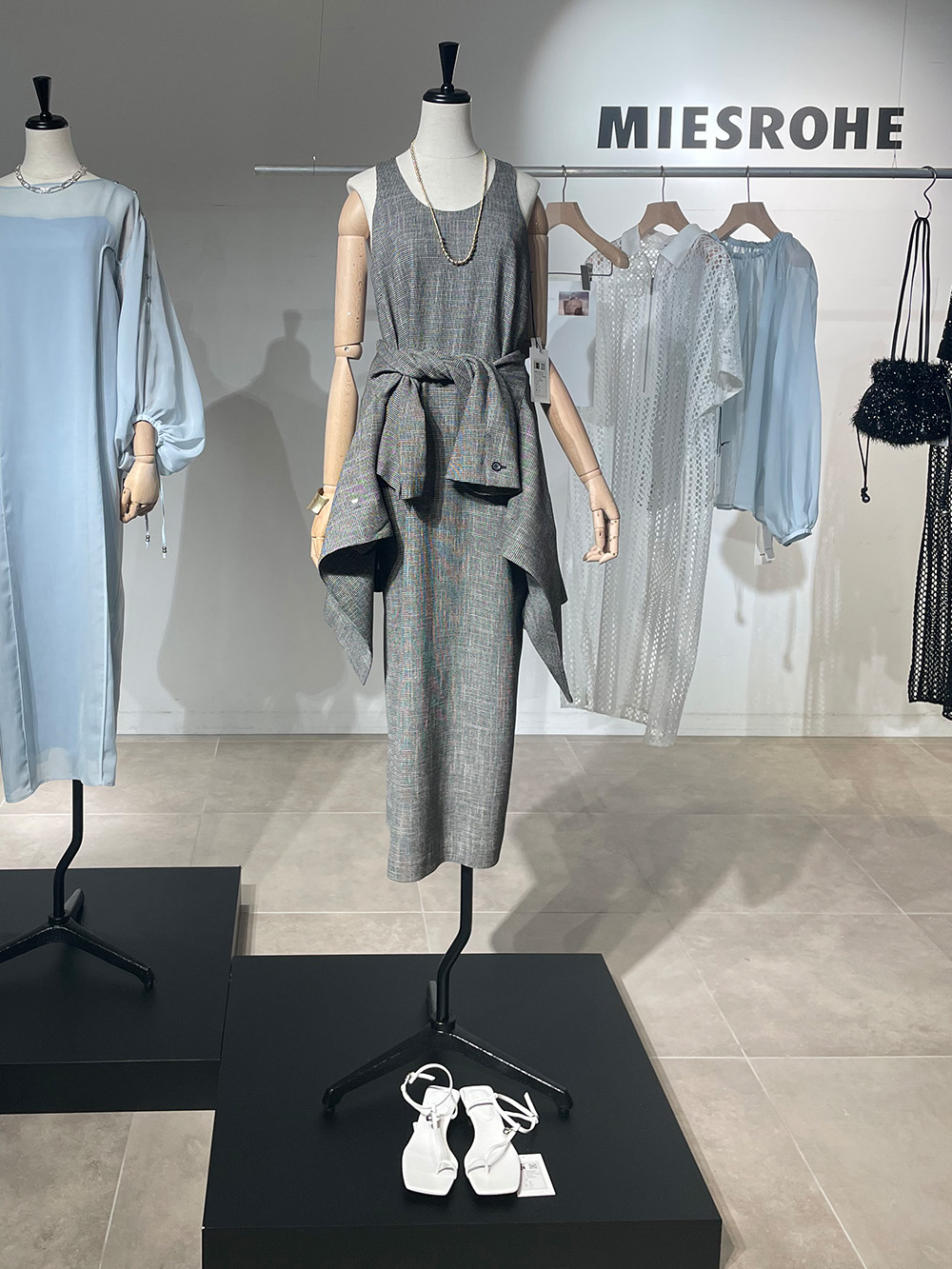 定番アイテムをいかに新鮮に見せるかという視点や、シアーアイテムの広がりによって、レイヤード提案がさらにパワフルになっている。ビスチェやブラトップが増加し、肌寒い時期はニットと、暑くなればタンクトップとの組み合わせで打ち出す。ラインストーンを使った、アクセサリー感覚のビスチェも。ジャケットやコートの上からシアー素材のシャツやフーディーをかぶせるといった、難易度高めのレイヤード提案も拡大。