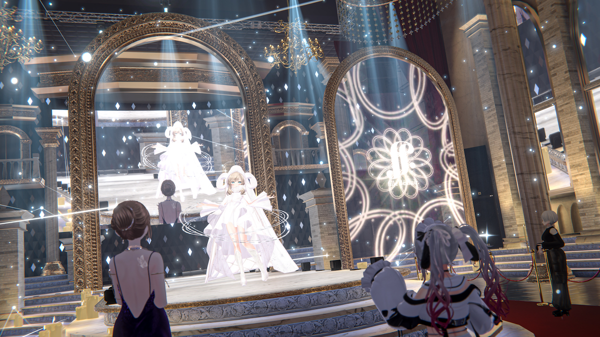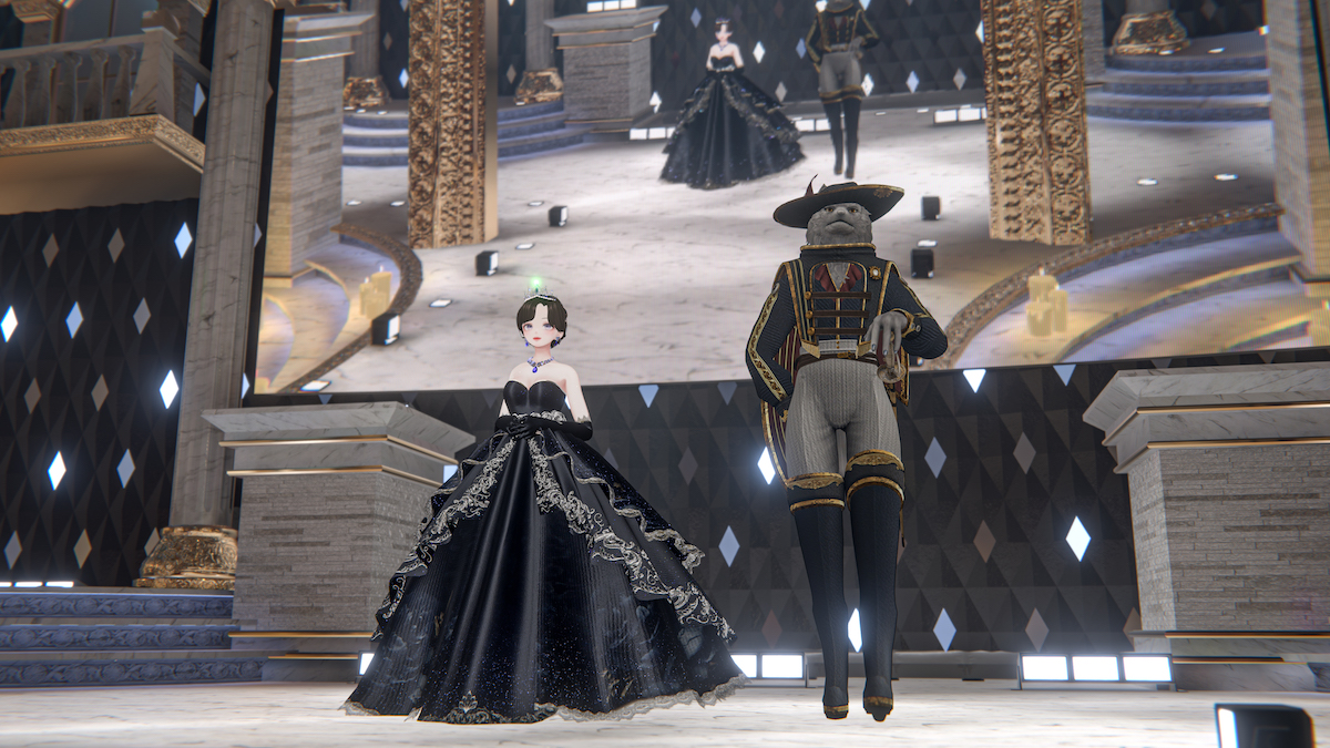 VRChatは1つのインスタンスに同時に入れる人数は数十人に限られる。作り込まれたワールドや、凝った衣装を着たアバターが多いと、それだけデータ容量が重くなる。そんなわけで、基本的にユーチューブでのライブ配信で楽しんでもらうようになっている。今回招待されたゲストはアバター制作者など、たったの23人。この限られた人しか体験できないというエクスクルーシブ感は、ある意味、パリなどで行われるコレクションショーに似ている。