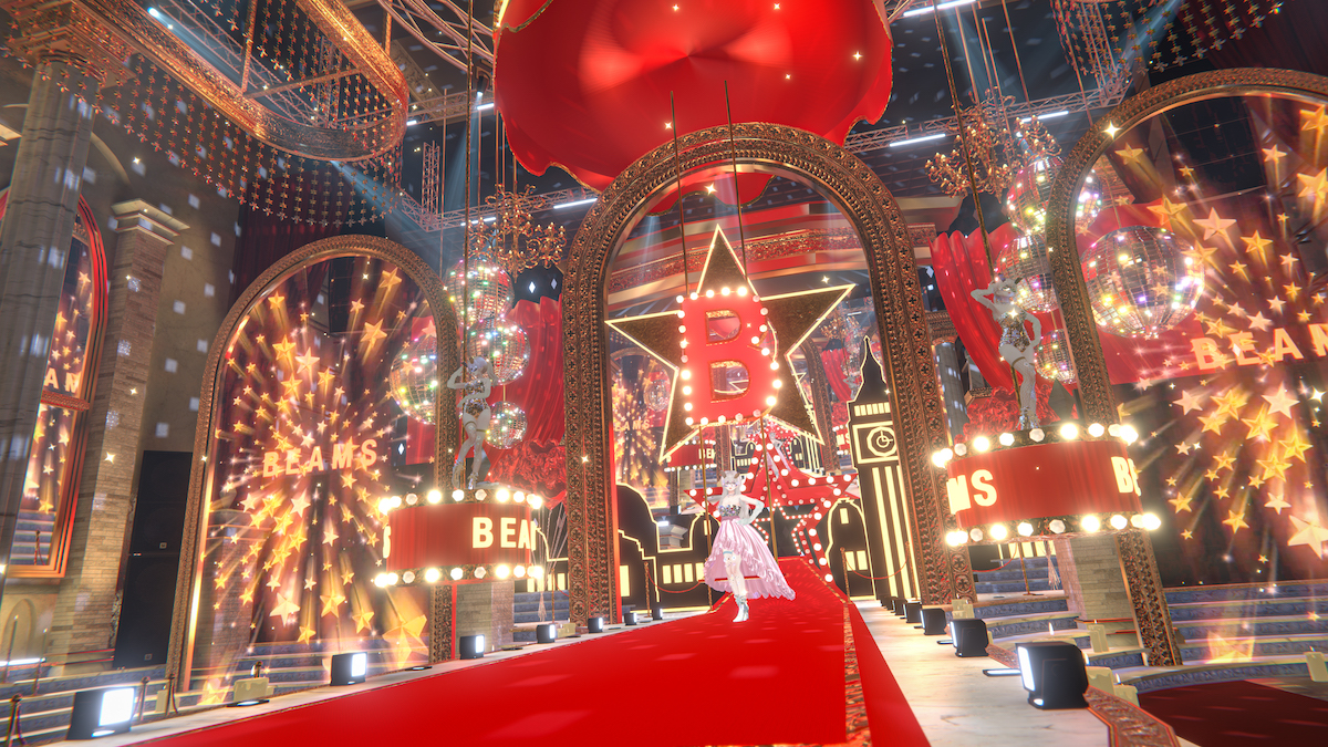 ビームスは協賛企業として参加。水上路美「ビームス クチュール」デザイナーがディレクションした、初の3D専用衣装で、この時が初公開。1着目はバーチャルネイティブブランド「ナトリエ(Natelier)」と共作した“レースと手刺しゅうのセーラー服”。セーラー服をベースにレースや刺しゅうといった手仕事感を3Dで再現した。