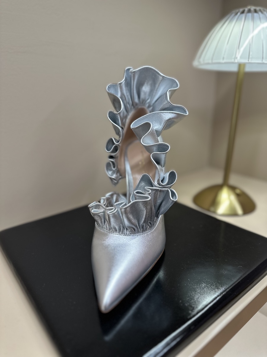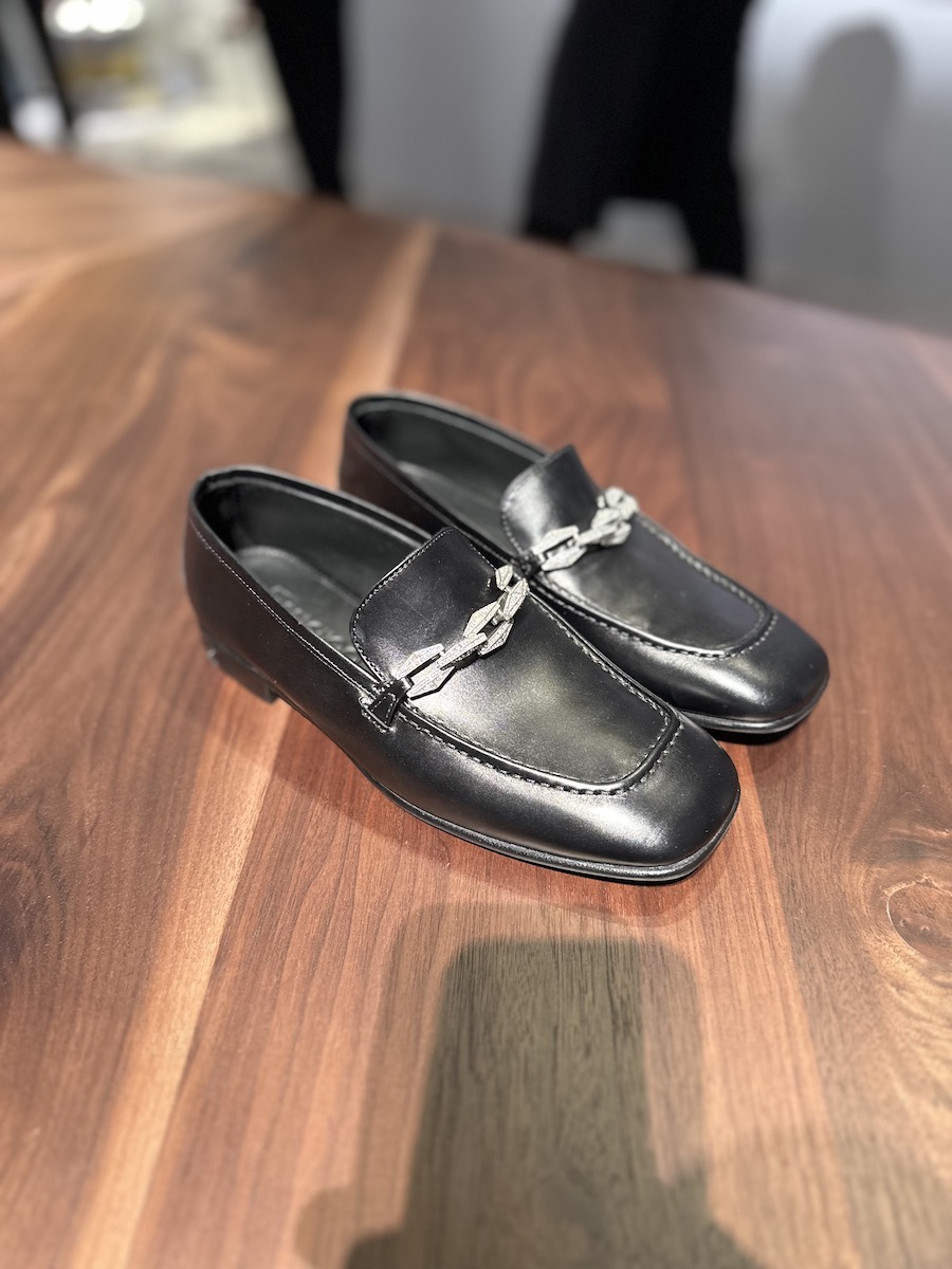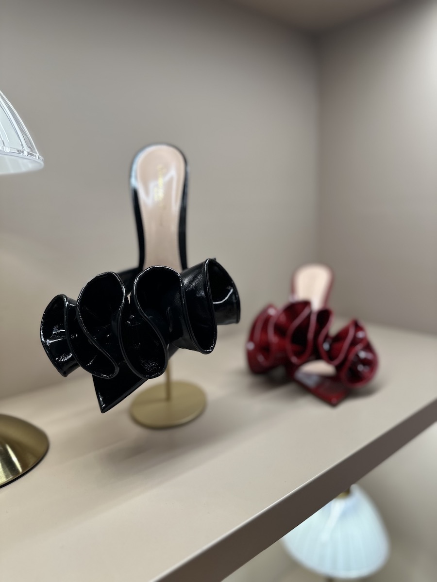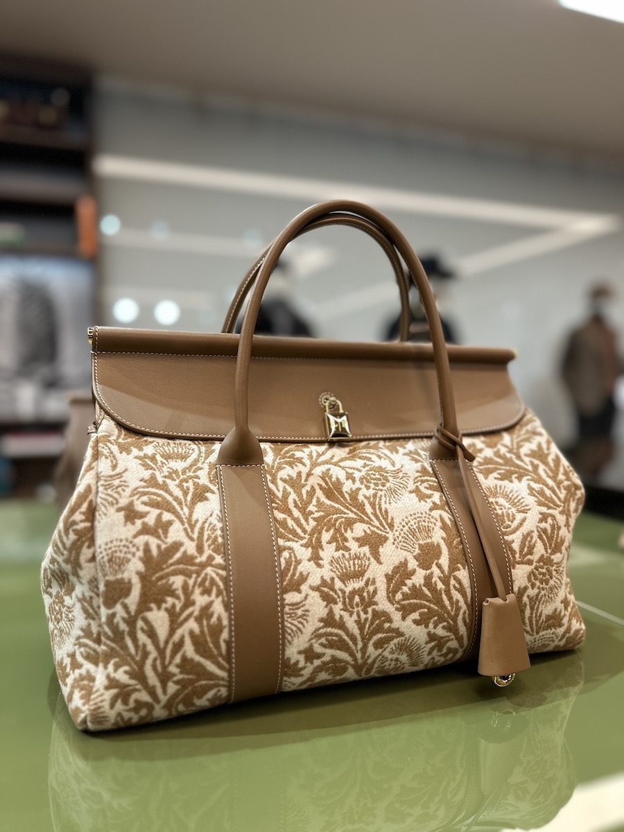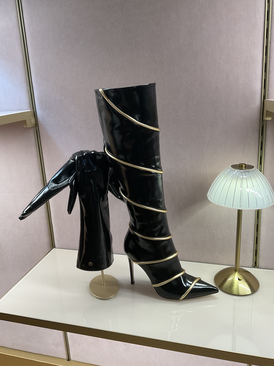 マッテオはイタリア・マルケ生まれで、テーラリングとアウターウエア、レザーウエアが得意といいます。確かに、前任のヴァルター・キアッポーニ(Walter Chiapponi)は、どちらかと言えば布帛が得意で若干フェミニンなイメージがありましたが(だからこそ「ブルマリン(BLUMARINE)」への移籍は妥当だったのかも)、マッテオはよりジェンダーレス。リラックスシルエットのパンツ、トレンチ&チェスターコート、ドレープが美しいベスト、サファリジャケットまで、さまざまなアイテムをレザーで提案しています。レザーで言えば、乗馬ブーツも美しかった。アイコンのドライビングシューズ“ゴンミーニ”は、レザーフリンジで覆われました。