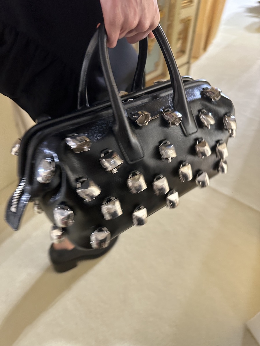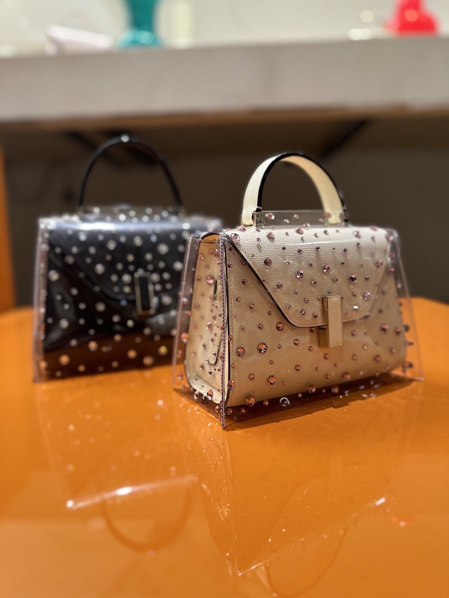 木村:「ヴァレクストラ(VALEXTRA)」の“イジィデ”バッグは、手彫りのアルミ素材やサテンなどパーティーシーンでも使える新作が登場です。キラキラした雫を描いたレインカバーもありました。京都の藍染師とコラボレーションしたバッグやソフトな肌触りの“餅バッグ”など、日本とのつながりを感じるアイテムも。グザヴィエ・ルジュー(Xavier Rougeaux)を最高経営責任者(CEO)は、「これらの新作を通して私たちの友人である日本の顧客との対話を楽しみたい」と話します。ちなみに“餅バッグ”は、ルジューCEOが日本に滞在中に虎屋のお餅にハマったところから誕生したとか。