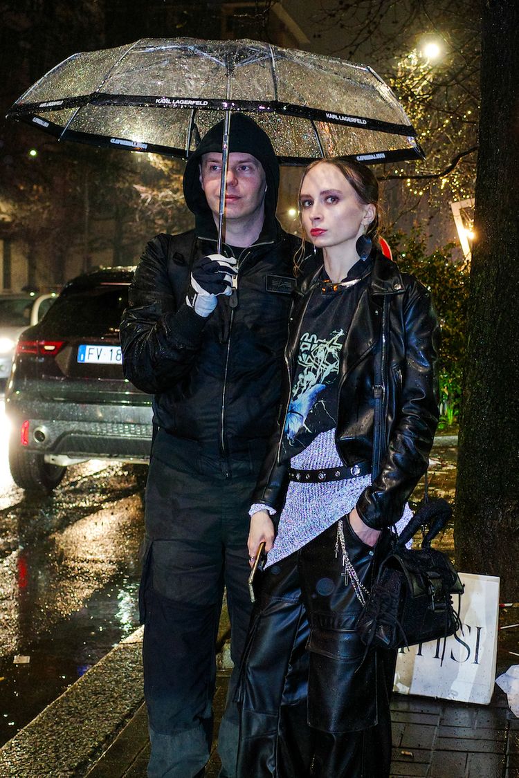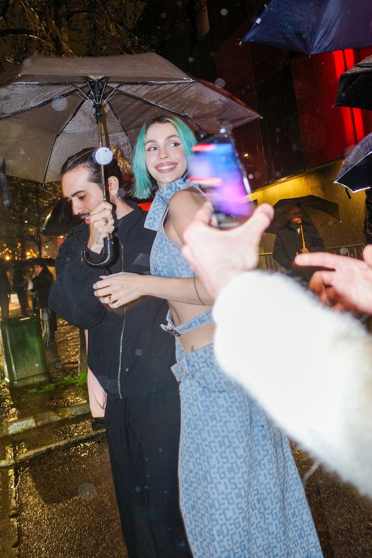 オウンシャンのユウナです。普段はDJや、クリエイティブデュオとして マッチャと音楽、アート、ファッションの活動を軸に、自分たちの視点で発信を続けています。マッチャと初めて挑戦したスナップ企画、最初の会場は「GCDS」です。2007年にスタートした同ブランドは、歌手のデュア・リパ(Dua Lipa)やアイス・スパイス(Ice Spice)ら海外アーティストにも愛される感度の高いブランド。この日はあいにくの天気にも関わらず、会場近辺はセレブリティを一目拝もうと、ファンとパパラッチで溢れ返っていました。