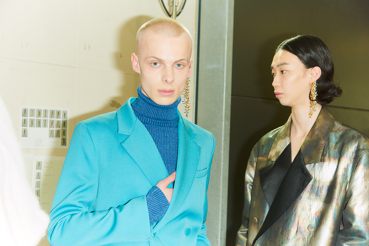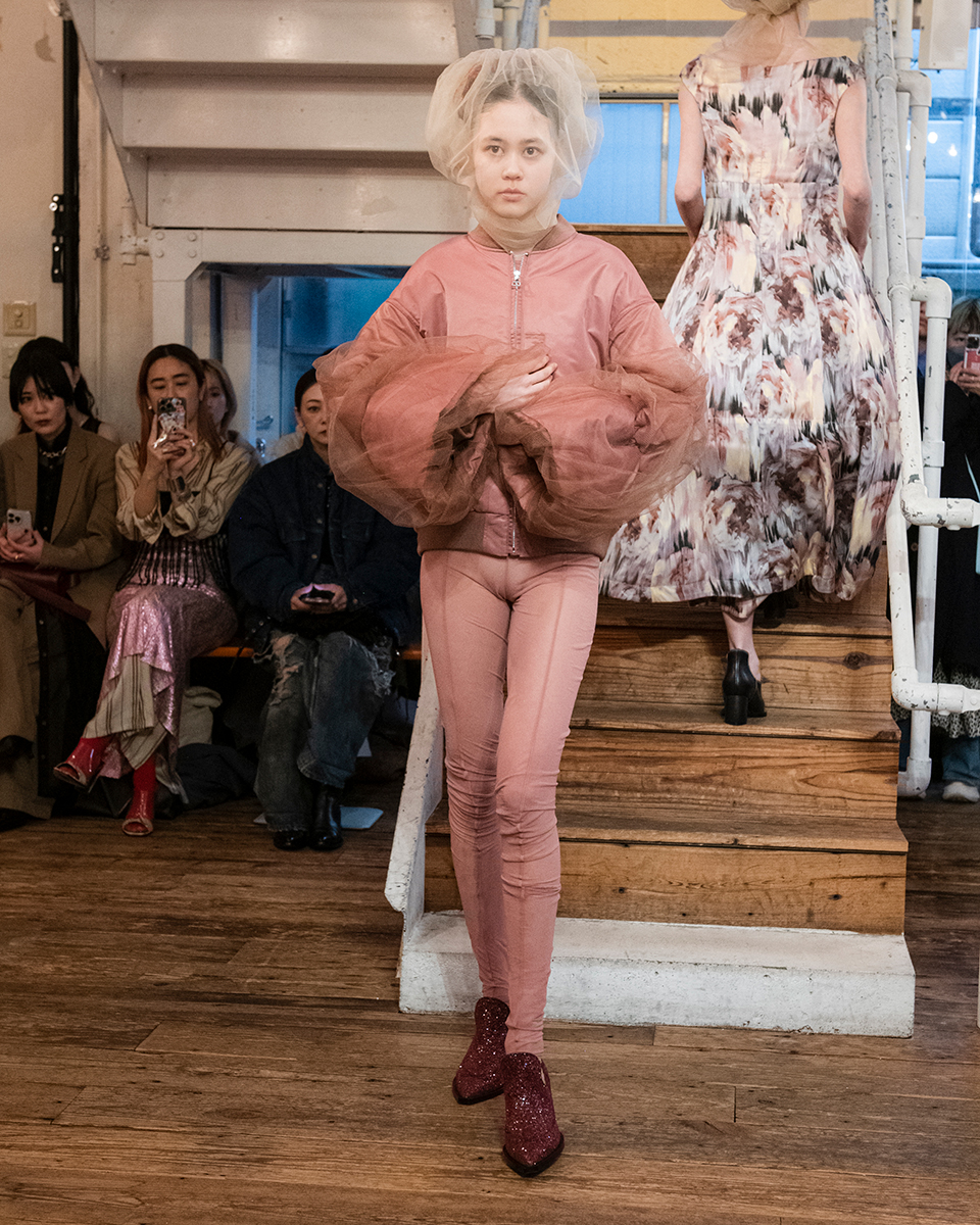 このようにジェンダーに対する感覚が、これまで以上に自由に、フラットになっている。「チカ キサダ(CHIKA KISADA)」は引き続き、バレエダンサーを思わせるレオタードや、チュチュのようにチュールをたっぷり使ったドレスを披露。ここにMA-1やレザーブルゾンなどの男性的なアイテムを合わせて、プリマドンナの新たなワードローブを提案した。