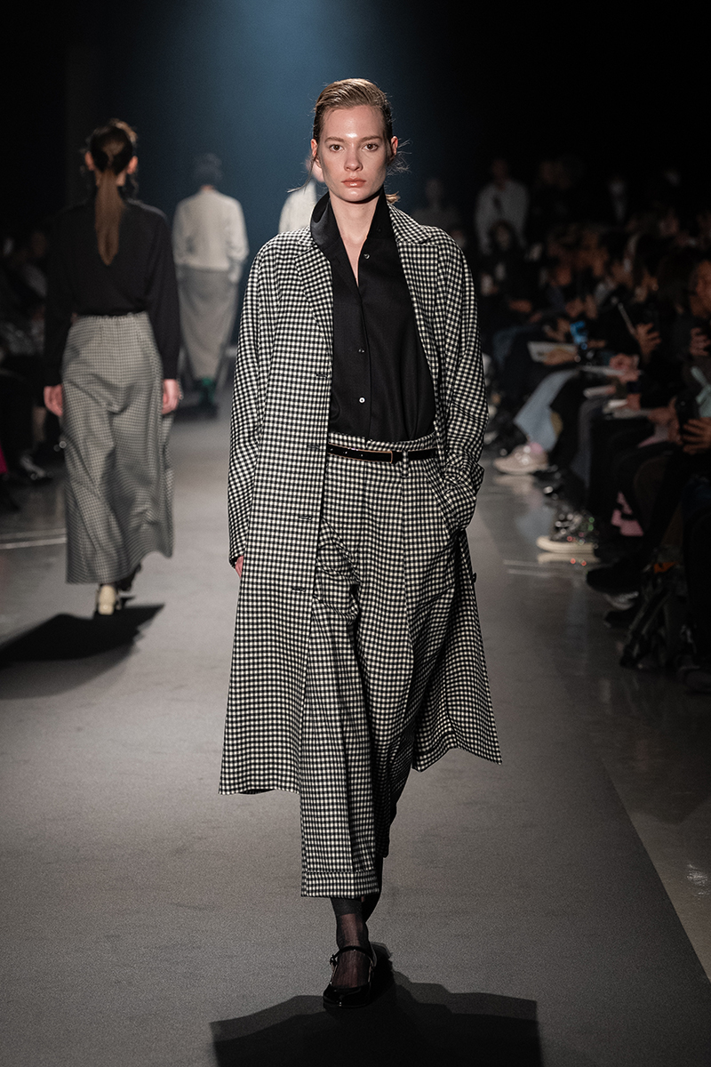「東京らしさ」が際立ちつつあるRFWTの中で、「世界基準」なのは「ハルノブムラタ(HARUNOBUMURATA)」だ。上質な生地をたっぷり使い、得意とする1枚の布を流線的にカッティングする手法でクワイエット・ラグジュアリーだ。クリエイションの背後に込めたアティチュードや、洋服を取り巻くカルチャーやコミュニティーまで含めて勝負する東京のブランドとは一線を画している。確かにコレクションは、ともすれば出自の「ジル サンダー(JIL SANDER)」をほうふつとさせたり、多くのインポートブランドが憧れる「ザ・ロウ(THE ROW)」を思わせたりする。ただこれまで、こうした海外のラグジュアリーブランドと比較される東京のブランドは存在しただろうか?世界を目指すブランドとして、着実にステップアップしている。
