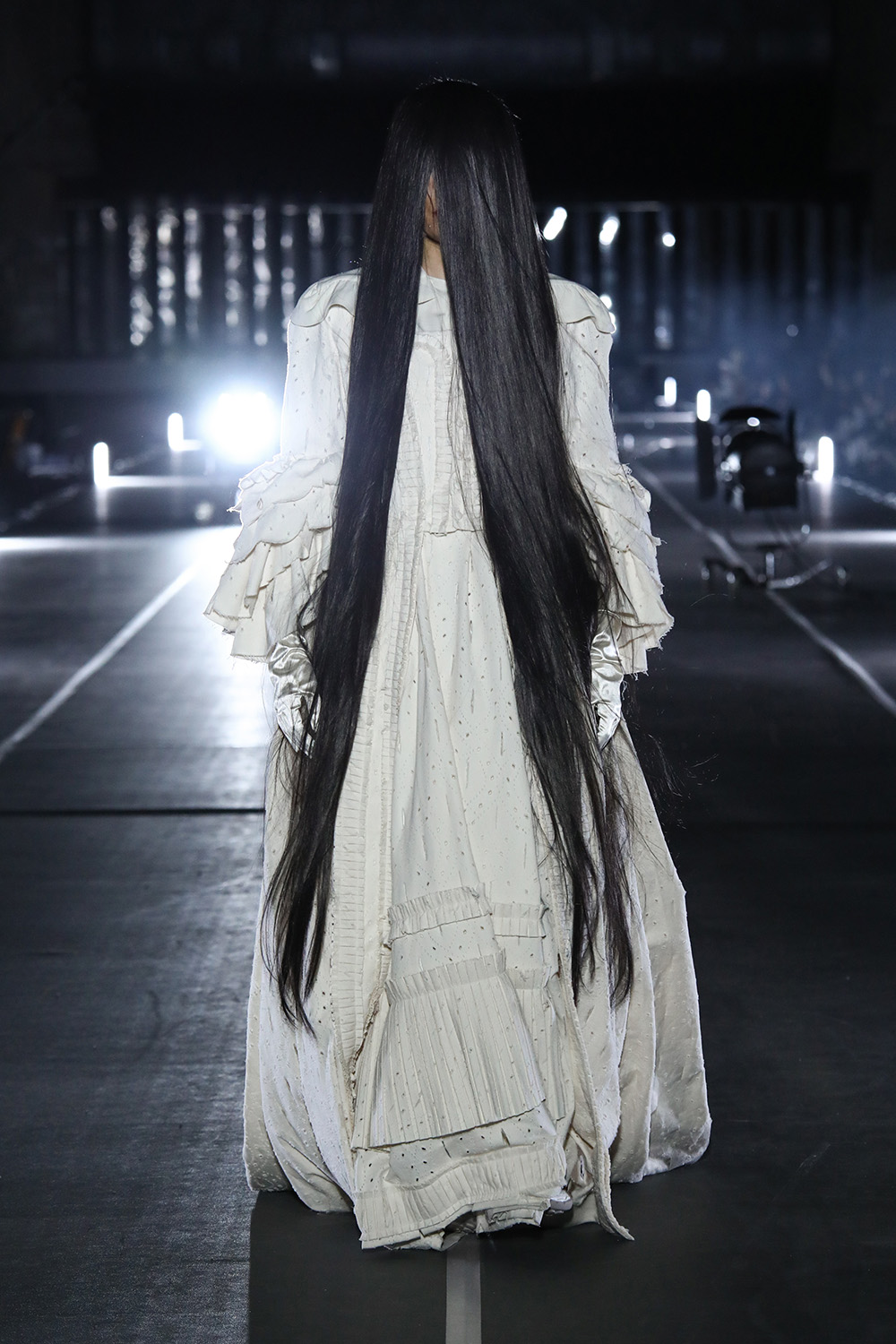 朝から「フォトコピュー(PHOTOCOPIEU)」のバックステージへ。マネキンを並べたインスタレーションは、照明も相まって神秘的なムードが高まる。現場チェックに忙しいスタッフのタイミングを測り、なんとか竹内美彩デザイナーへの取材に成功!静かなデザイナーの芯の強さを感じ、同じ女性として励まされた。それから公式車で「タエ アシダ(TAE ASHIDA)」「アキコアオキ(AKIKOAOKI)」に急ぐ。次の「ミューラル(MURRAL)」では会場内で道に迷い猛ダッシュすることに。ラストの「ミキオサカベ(MIKIOSAKABE)」では開演前の代々木体育館から長蛇の列が伸びており、約3000人が集まったと知って驚がく。ショーの最中に貞子のような衝撃のルックが登場し、黒々とした美髪から目が離せない。
