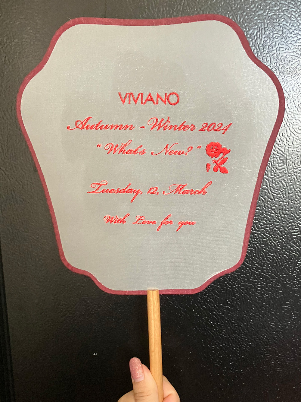 「ハルノブムラタ(HARUNOBUMURATA)」のバックステージ取材に行きたいが、記事も書きたい。原宿のモスバーガーでギリギリまで作業し、外に出たら土砂降りの雨で絶望した。カメラマンとモデルのオフショットを撮りながら、いい撮れ高にホクホク。次の「コウタ グシケン(KOTA GUSHIKEN)」はショーではなく漫才を披露。ピースの又吉直樹らがブランドの展示会で新作を試着するネタで、思いのほか服の良さが伝わり「新しいショーの形!」と大興奮。昨日からレッドブルを飲みすぎて腹痛に苦しみつつ、「ヴィヴィアーノ(VIVIANO)」の高輪貴賓館に向かう。席に扇のギフトを見つけ、テンションアップ。
