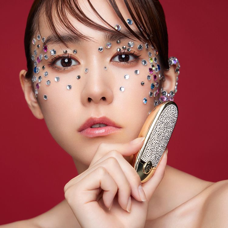 そんな同商品の魅力を伝える桐谷の新ビジュアルは全9ルック。1940年代風のモダンなスタイルから金髪ショート姿、目元にラインストーンをあしらったモードな姿まで、ケースやリップカラーのムードに合わせてさまざまな表情を見せている。