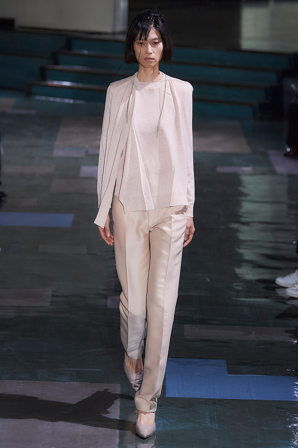 テーマは“未完の完成品”。ゆとりのあるシルエットのブラウスや、シアー素材を使用したワンピース、ドレープの効いたワイドパンツなど、流動的なシルエットのアイテムの“余白”で、未完成を表現した。こだわりの滑らかな素材使いや、水彩画風のストライプなど意匠性の高い柄は、“完成”の象徴。コレクション全体に未完成性と完成性の両側面をしのばせた。“着る人を美しく見せる”という衣服の本質的な価値を、研壁宣男デザイナーらしいミニマルなデザインで追求した。