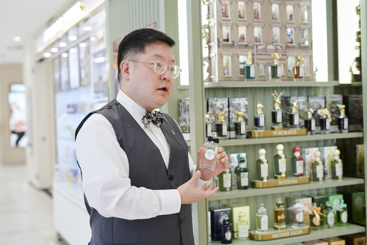 ブルーベル・ジャパンの田村敏之さんは、同社が展開するフレグランスセレクトショップの「ラトリエ デ パルファム(L’ATELIER DE PARFUMS)」松屋銀座店チーフを務めている。香りは目に見えず、嗅覚に直結する感覚的なもの。市場のトレンドはあるとはいえ、より各消費者の感覚や嗜好に左右される特殊な商材だ。販売力はもちろんだが、商品や香りに対する専門知識や感覚に訴える説得力が必要になる。田村さんは、同社独自のパルファム ソムリエの資格を持つ香水のスペシャリスト。ここ数年の香水ブームにより多様化する消費者のニーズに応えている。彼は、「好きなものに対して共感し合い、お客さまと一緒に盛り上がるのが楽しいです」と話す。(この記事は「WWDJAPAN」2024年9月23日号から抜粋・加筆しています)