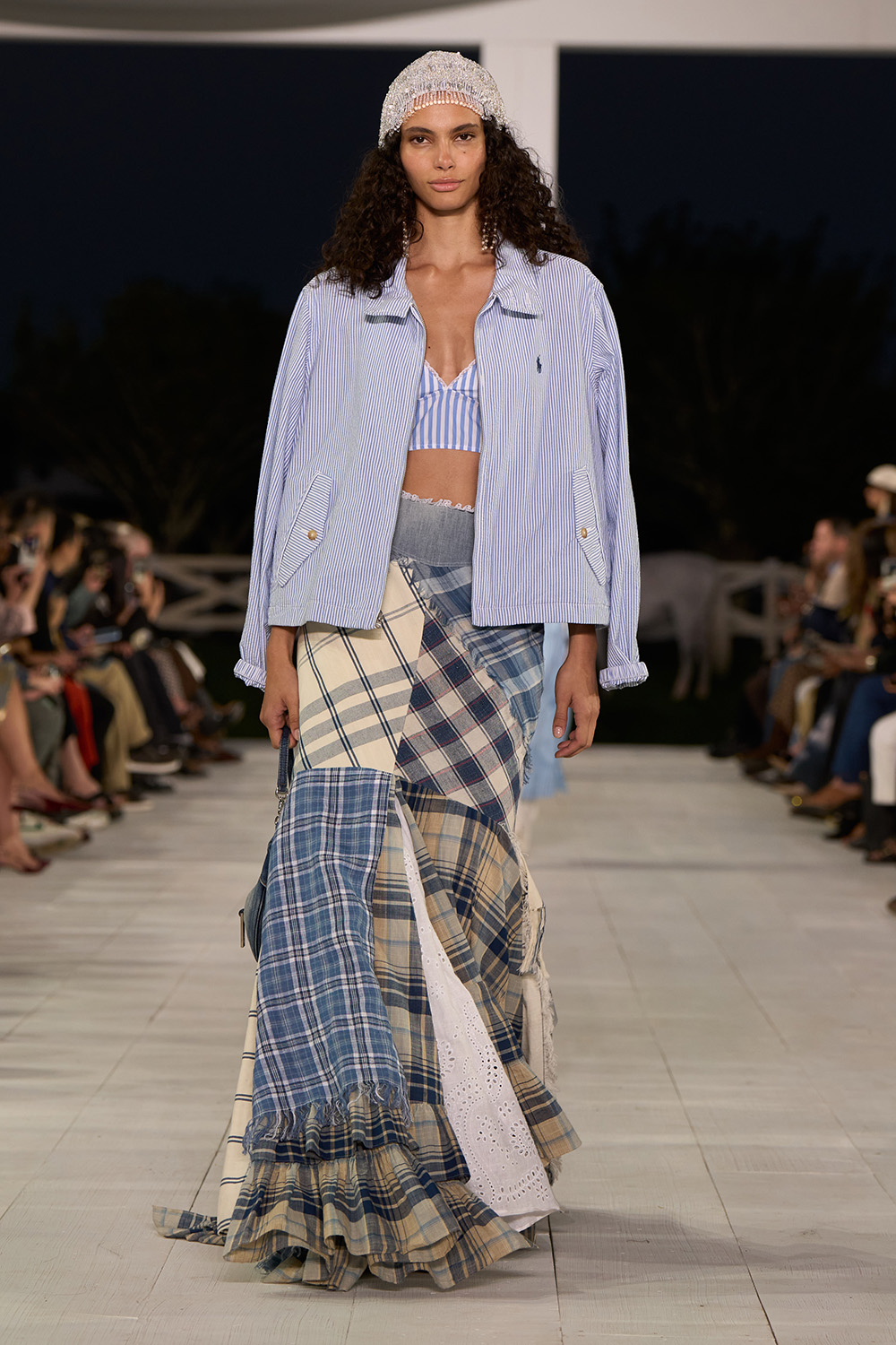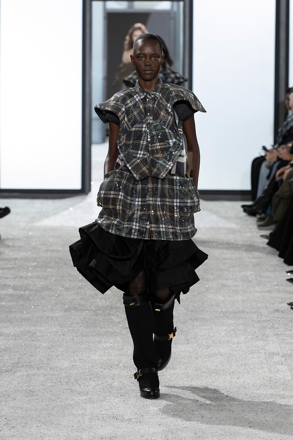チェックは、グランジムードに通じるダークカラーや褪せたような配色で描く落ち着いたデザインが増えている。そこに、大きなリボンやラッフルといったファンシーな装飾を掛け合わせたコントラストある提案が新鮮に映った。