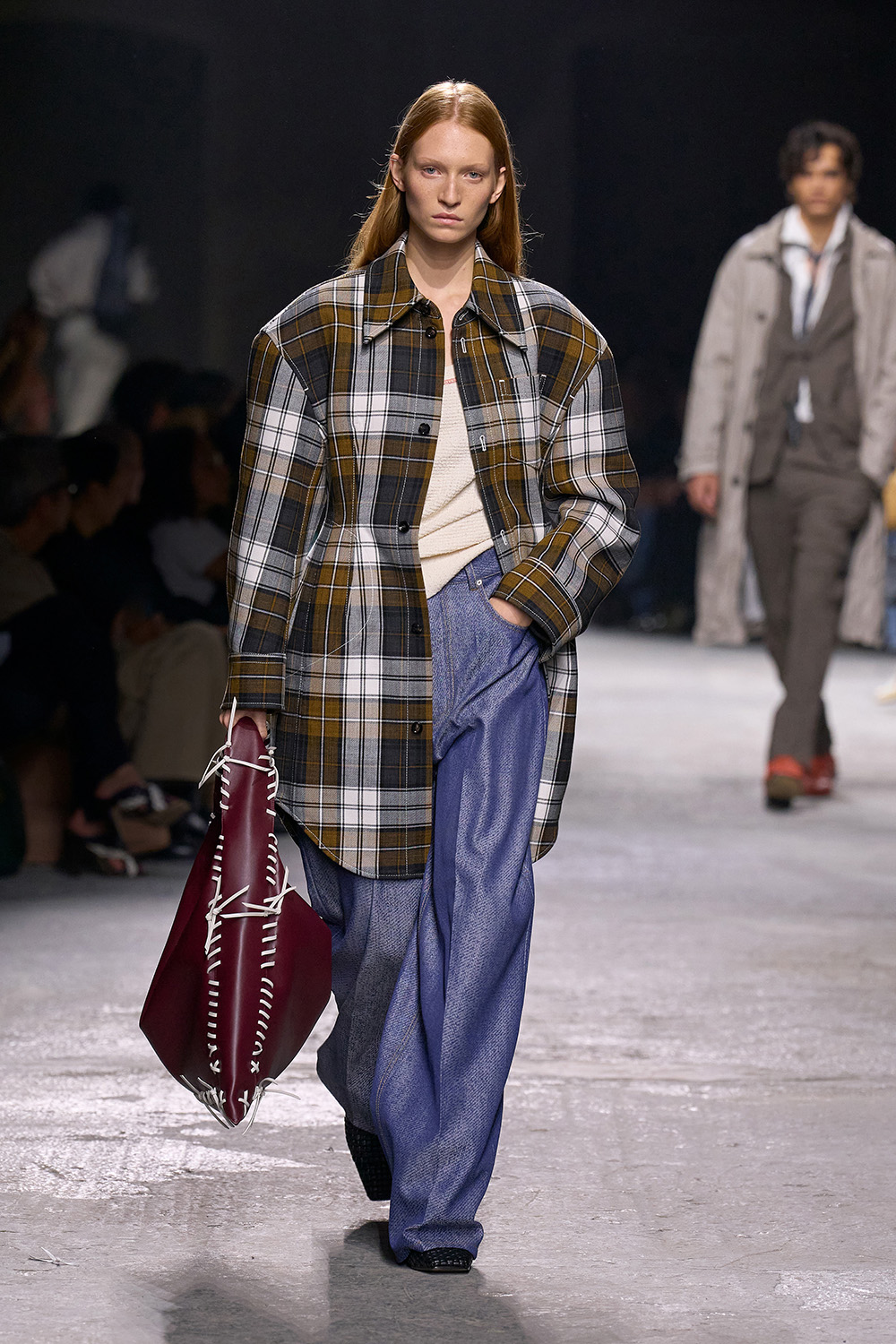 ボトムスやアウターを筆頭に、デニムやツイルなどワークウエア由来のタフな素材使いも引き続き。軽いオンスやウオッシュ加工を生かして、より滑らかに仕上げた提案も多い。きらめく装飾でコントラストを描いたジーンズにも注目。