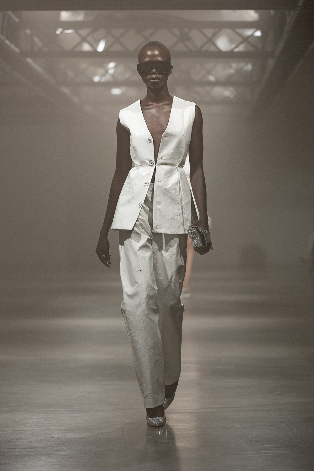ピュアホワイトのコーディネートも涼しげで好印象だ。透け感を生かしたガーリーやフェミニンなスタイルからスーツまでが登場。「エムエム6 メゾン マルジェラ(MM6 MAISON MARGIELA)」は、創業者時代に通じる真っ白なペイントをウエアやシューズに施した。