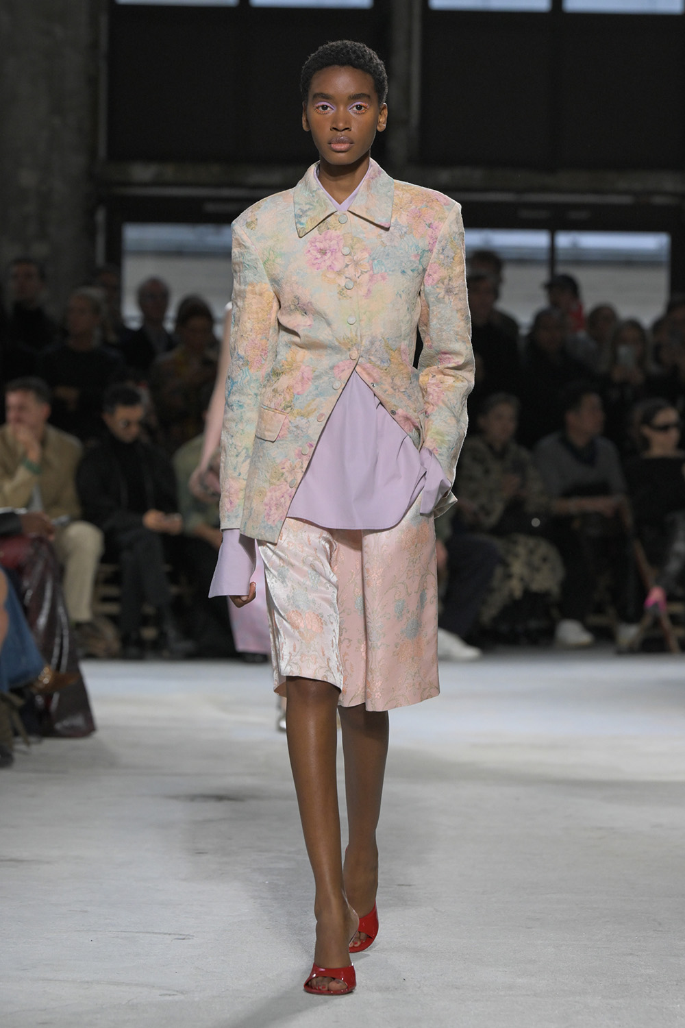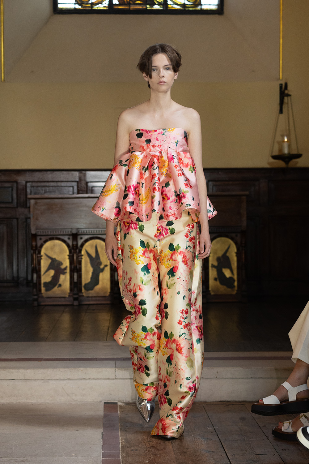 定番の花柄は昨シーズンに続き、古い壁紙やインテリアをほうふつとさせるアンティーク調のデザインが充実。印象派の作品から着想した花をジョーゼットにプリントした「ロエベ(LOEWE)」など、特に絵画のような繊細なモチーフが多い。