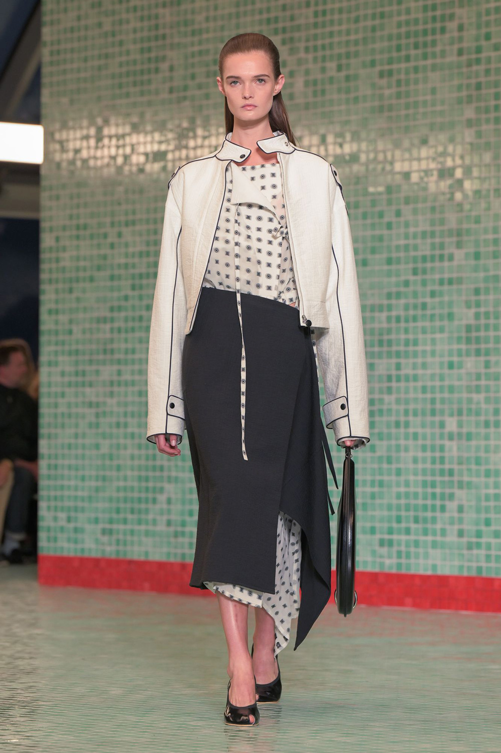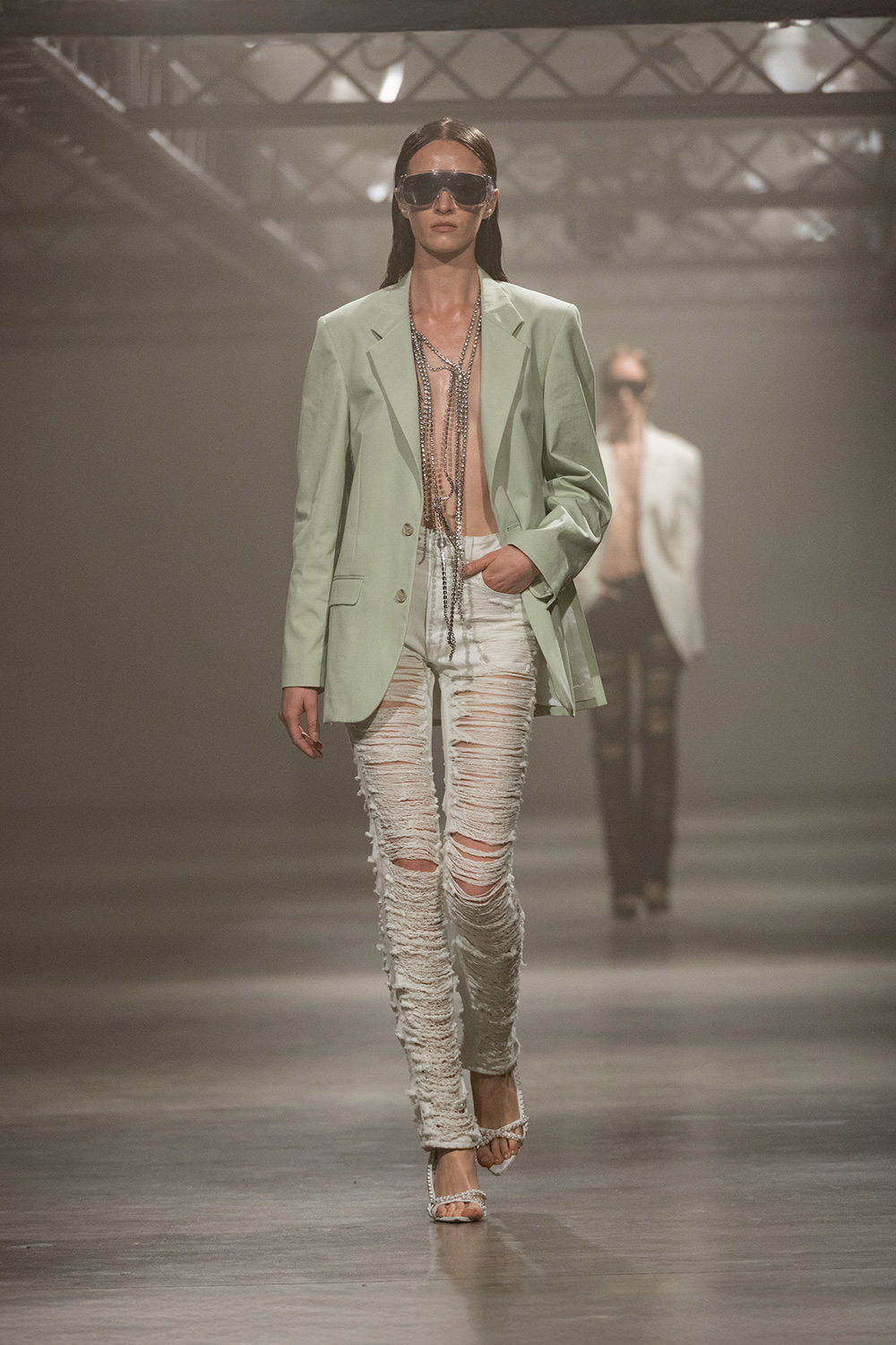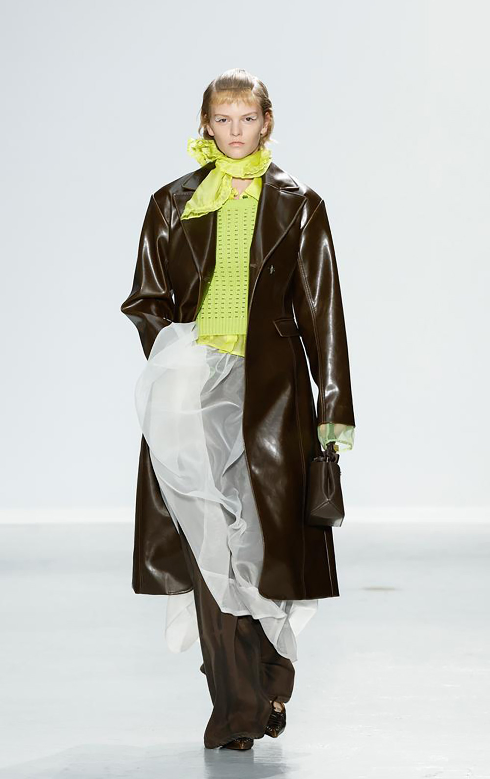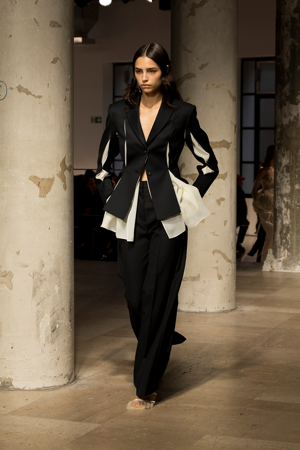フェミニンな傾向が強まる一方、継続トレンドのかっちりとしたテーラリングやオーバサイズのトレンチコートなどハンサムなスタイルを軸にした逞しい女性像の表現も目を引いた。ポイントはコントラスト。シアー素材やランジェリーライクなアイテム、肌見せ、アクセサリーでフェミニンな要素を加えた着こなしが中心になる。ジャケットは、「ケイト(KHAITE)」や「ボッテガ・ヴェネタ(BOTTEGA VENETA)」のようなパワーショルダーや幅広のラペルが特徴のボックスシルエットだけでなく、より細身のラインやウエストをシェイプしたデザインなどバリエーション豊富に。