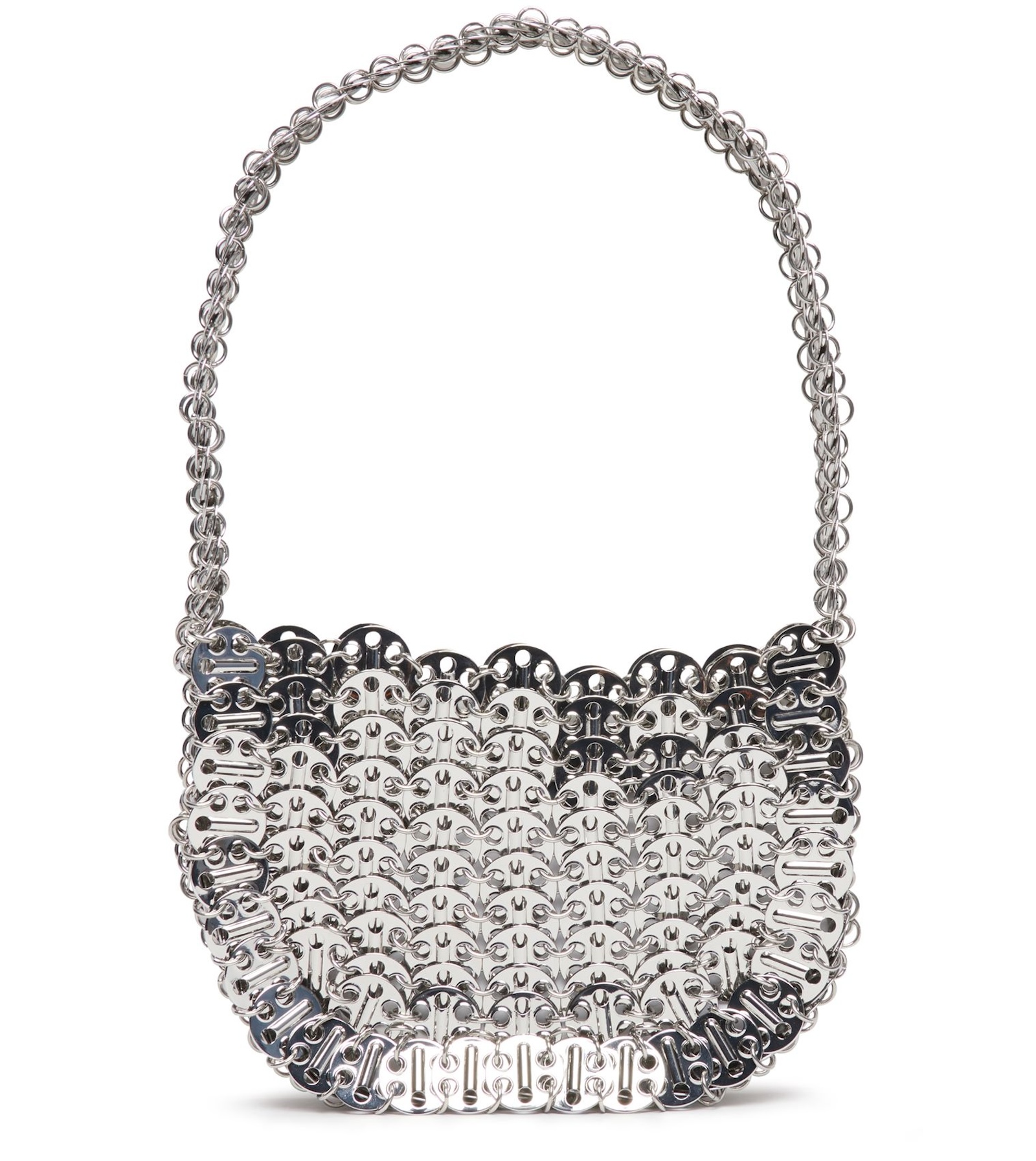 「ラバンヌ(RABANNE)」は、シャツにチェック柄のジャケットを重ねたオーソドックスなプレッピースタイルに、ファーアウターをオン。さらに、チェック柄のミニスカートからはビジュー付きタイツをのぞかせて、ビジュー付きバッグも合わせて華やさを添えました。